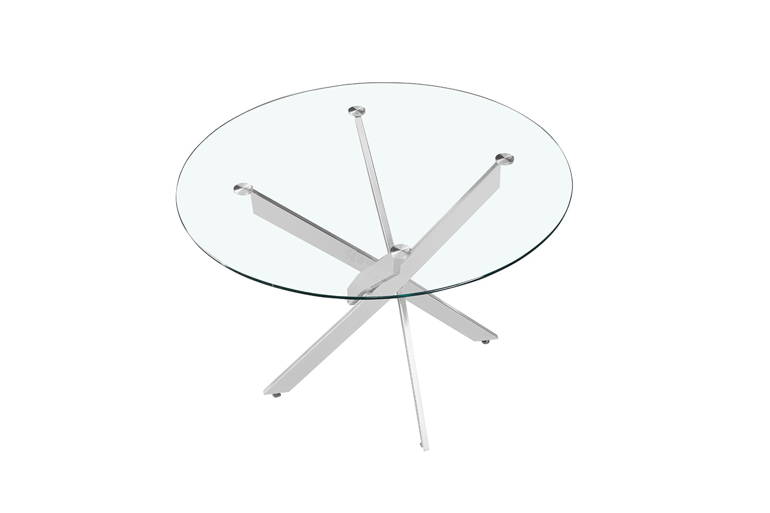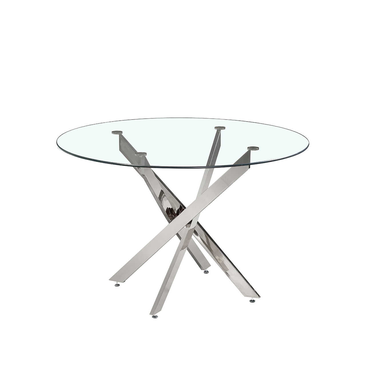 Ontdek de Eetkamertafel Martijn Glas Rond met een diameter van 120 cm! Met een gewicht van 35 kg en een hoogte van 77 cm biedt deze tafel een stijlvolle plek om samen te eten. Het elegante glazen tafelblad zorgt voor een open uitstraling, terwijl het metalen onderstel stabiliteit en een moderne flair toevoegt.