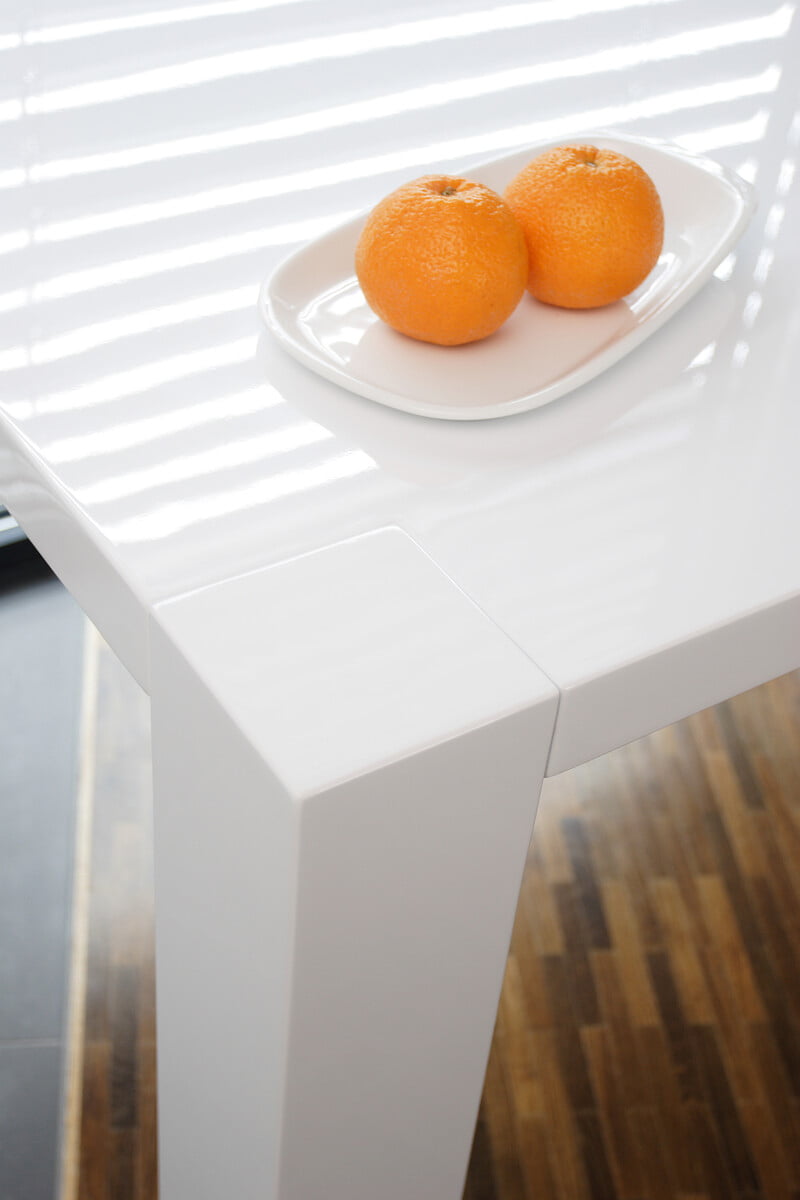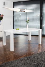 Deze stijlvolle eettafel vindt gemakkelijk zijn plaats in elk interieur. Het tafelblad is vervaardigd uit een stevige MDF en afgewerkt in hoogglans wit. De poten van 10×10 centimeter zorgen ervoor dat deze tafel stevig staat. Het tafelblad is 4,5 centimeter dik. Gemakkelijk te monteren doormiddel van bijgeleverde montagehandleiding.