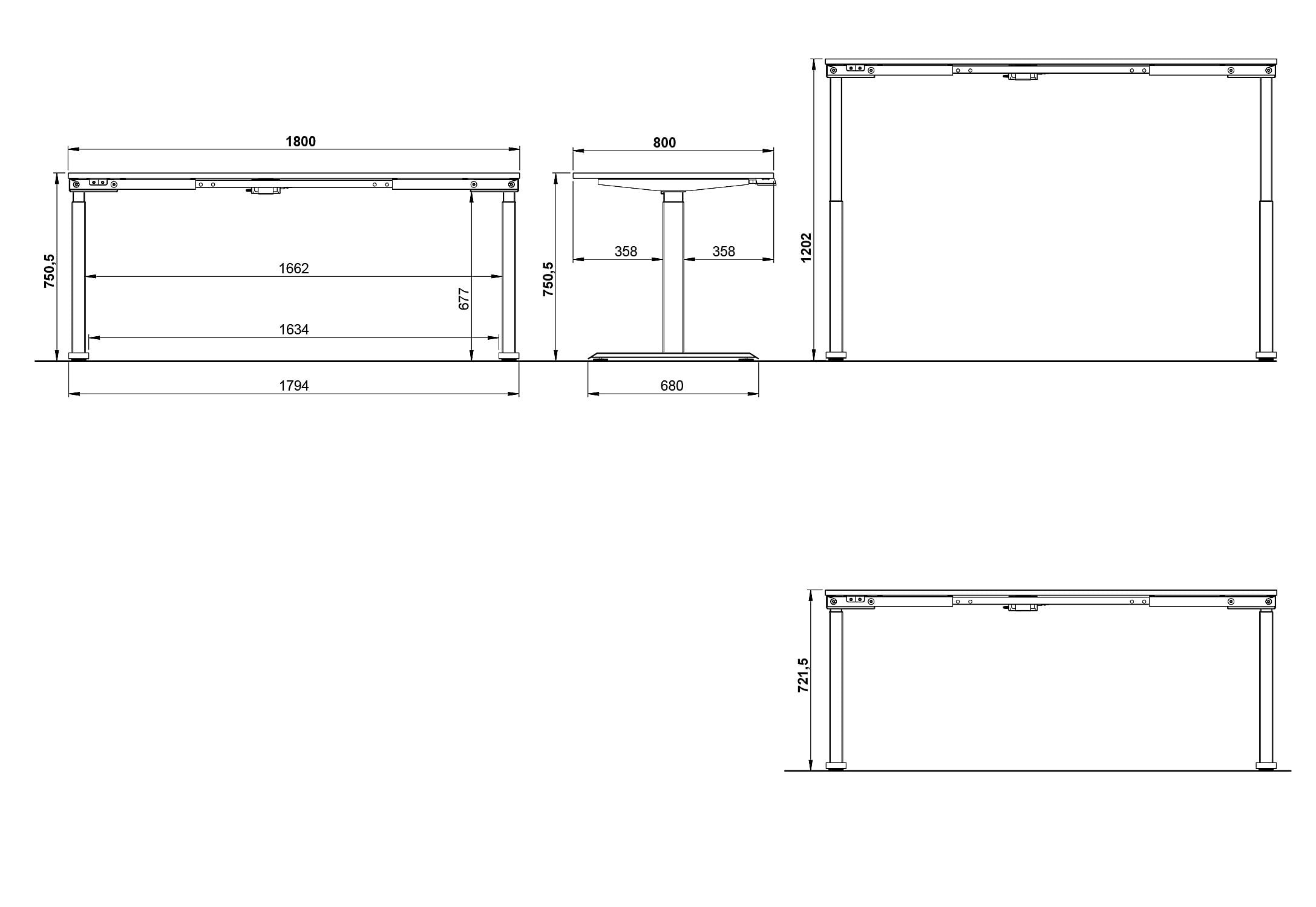 Dankzij de elektrische hoogteverstelling, met een bereik van 72 tot 120 cm, kun je eenvoudig schakelen tussen zittend en staand werken. Het bureau wordt geleverd met een stroomkabel, stekker en bedieningseenheid voor traploos verhogen en verlagen van het tafelblad.