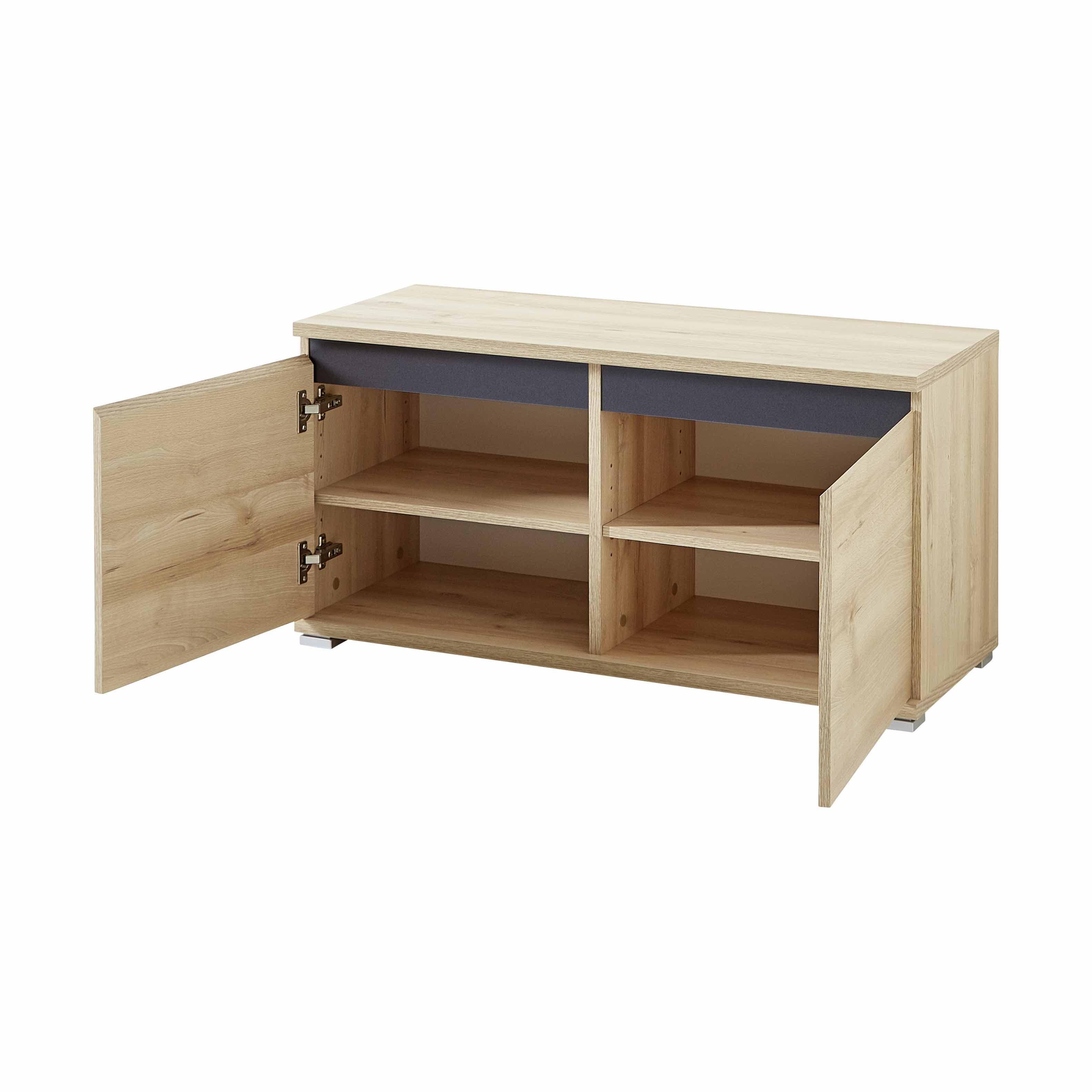Deze praktische hal bank vindt gemakkelijk zijn weg in elk interieur. Voldoende ruimte voor ongeveer 8 paar schoenen. De deuren zijn voorzien van soft-close en de legplanken zijn in hoogte verstelbaar. Deze serie meubelen is geproduceerd in Duitsland en is van hoge kwaliteit. Door een sterke melamine afwerking in combinatie met een ABS-kantafwerking ben je met deze meubels verzekerd van een lange levensduur. Eenvoudig te monteren met behulp van een duidelijke montagehandleiding. Leuk te combineren met de andere items uit deze serie!