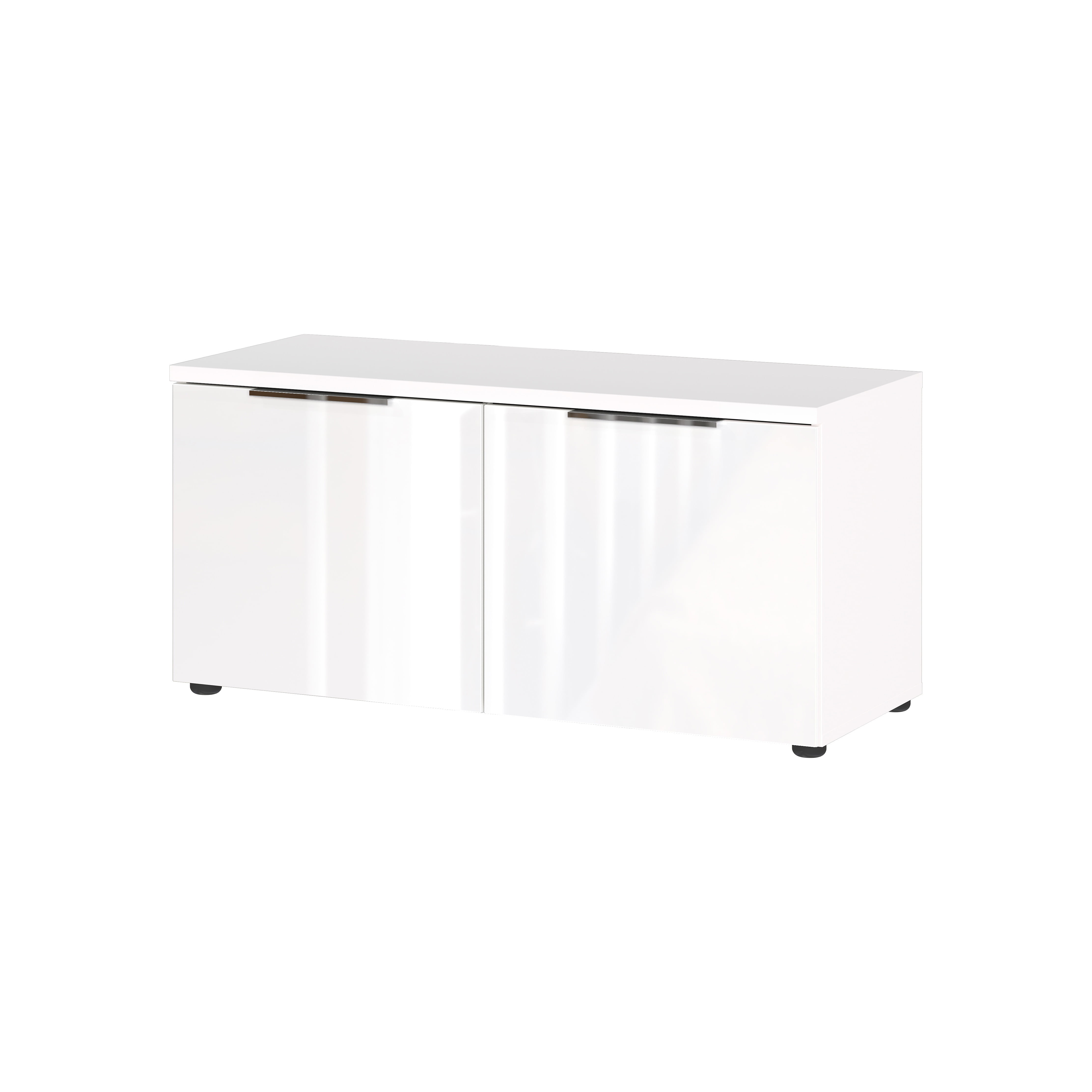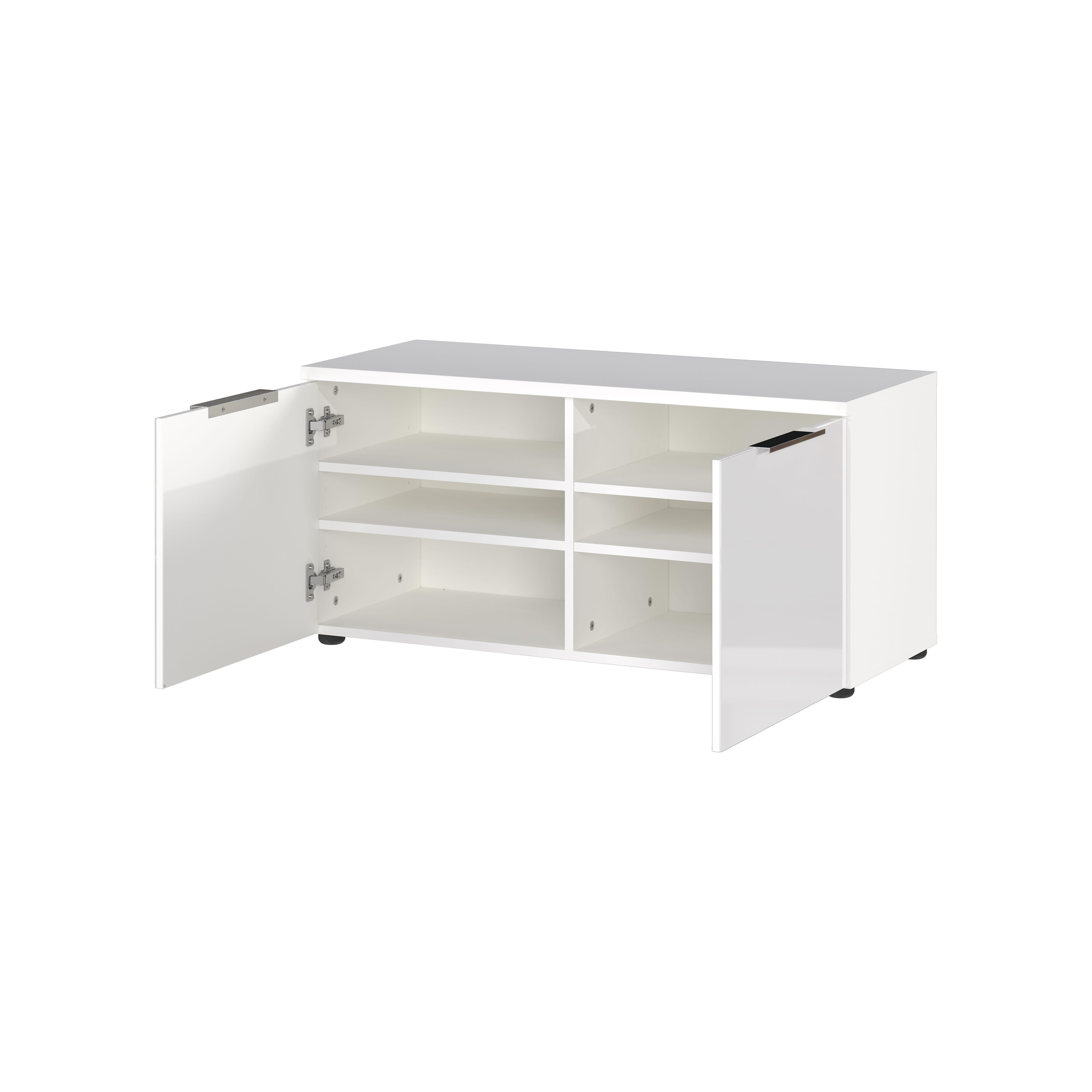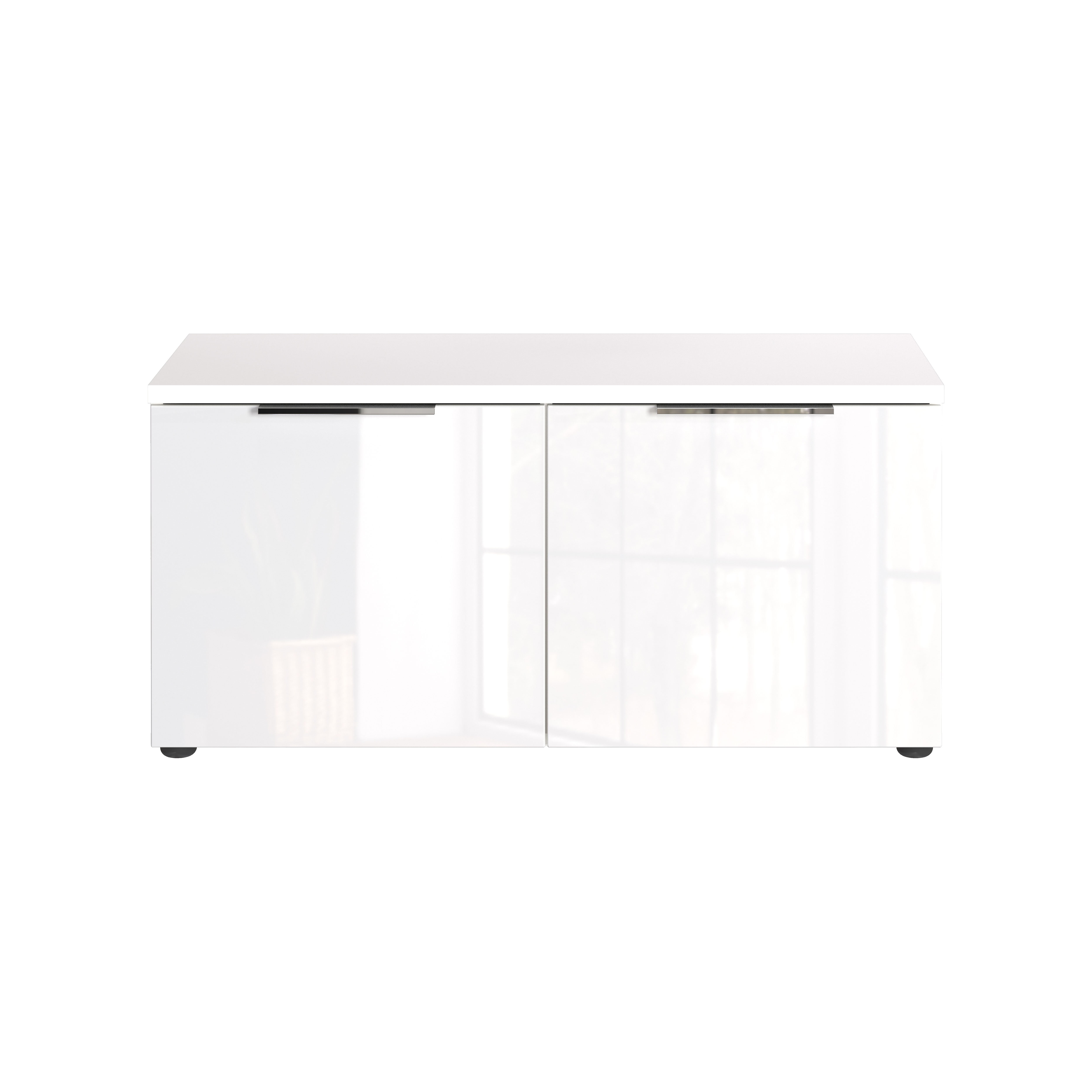De halbank Montreal Wit combineert een praktische opbergruimte met een stijlvol zitgedeelte. De twee deuren verbergen in totaal vier verstelbare planken, die elk tot 15 kg kunnen dragen. Het bovenblad heeft een tijdelijke draagkracht van 80 kg en biedt ruimte voor een los verkrijgbaar zitkussen. De krasbestendige glasfronten en metalen randgrepen in chroom zorgen voor een elegante uitstraling.