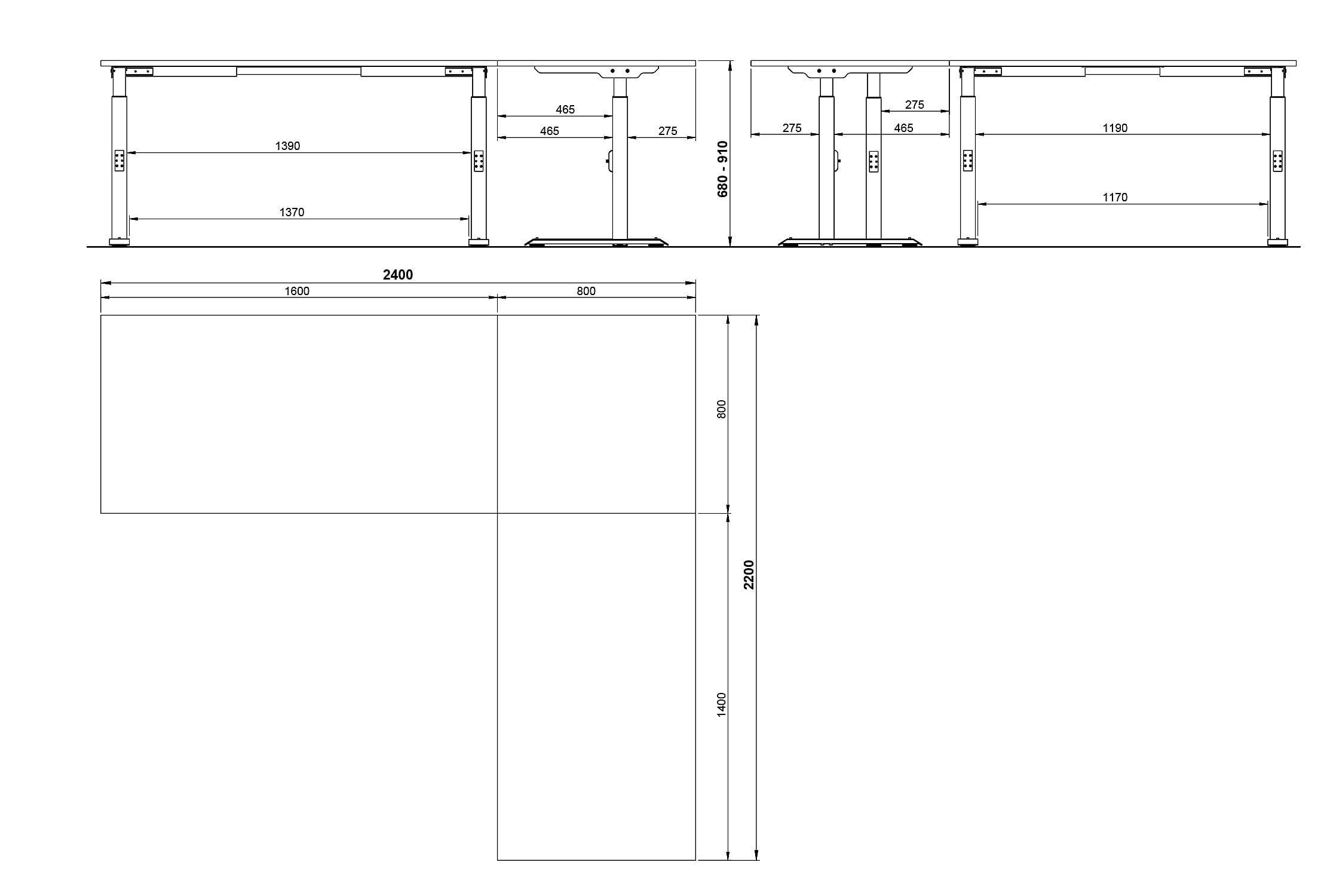 • Ergonomisch bureau, mechanisch in hoogte verstelbaar