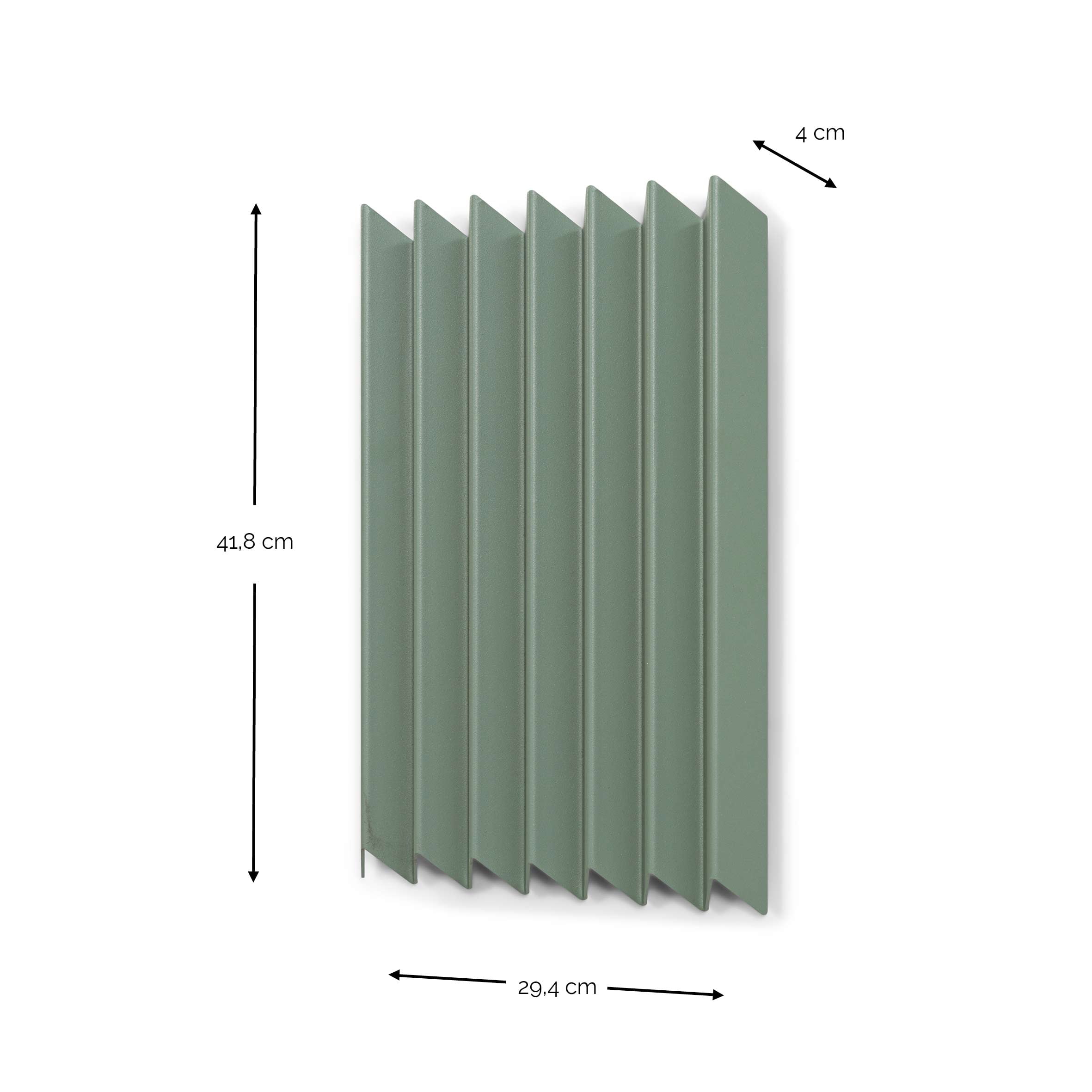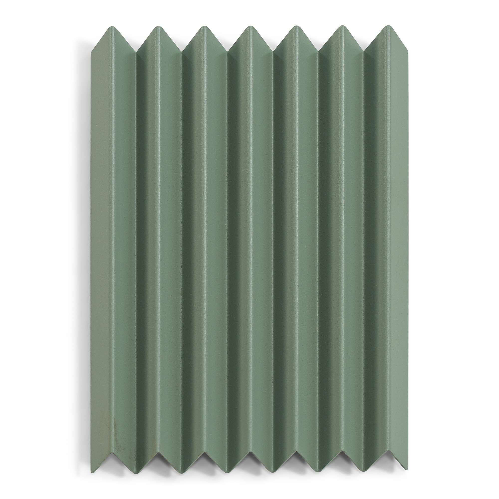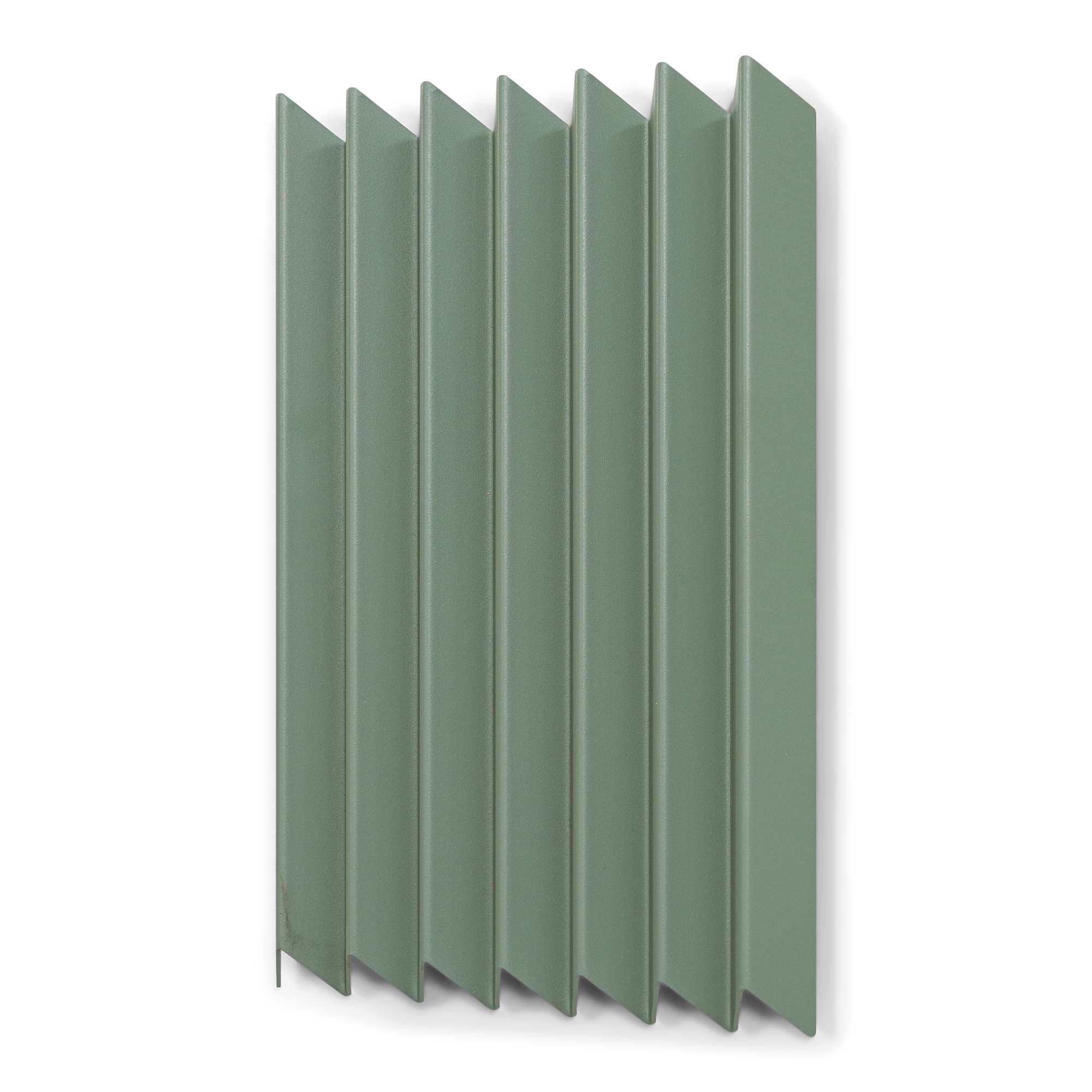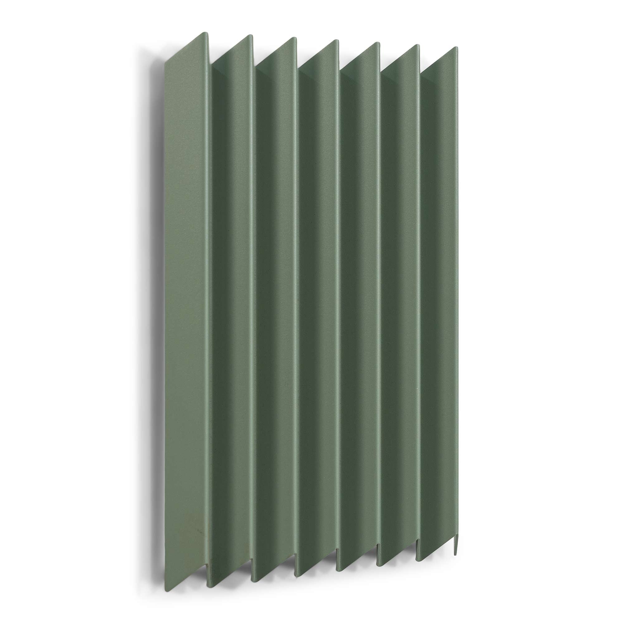 Deze kapstok combineert functionaliteit met een stijlvol design. De unieke vormgeving geeft niet alleen een moderne uitstraling, maar biedt ook voldoende ruimte voor jassen, tassen en accessoires. De discrete haken aan de bovenkant maken het ophangen eenvoudig, terwijl het gevouwen staal zorgt voor een speels licht- en schaduweffect op de muur.