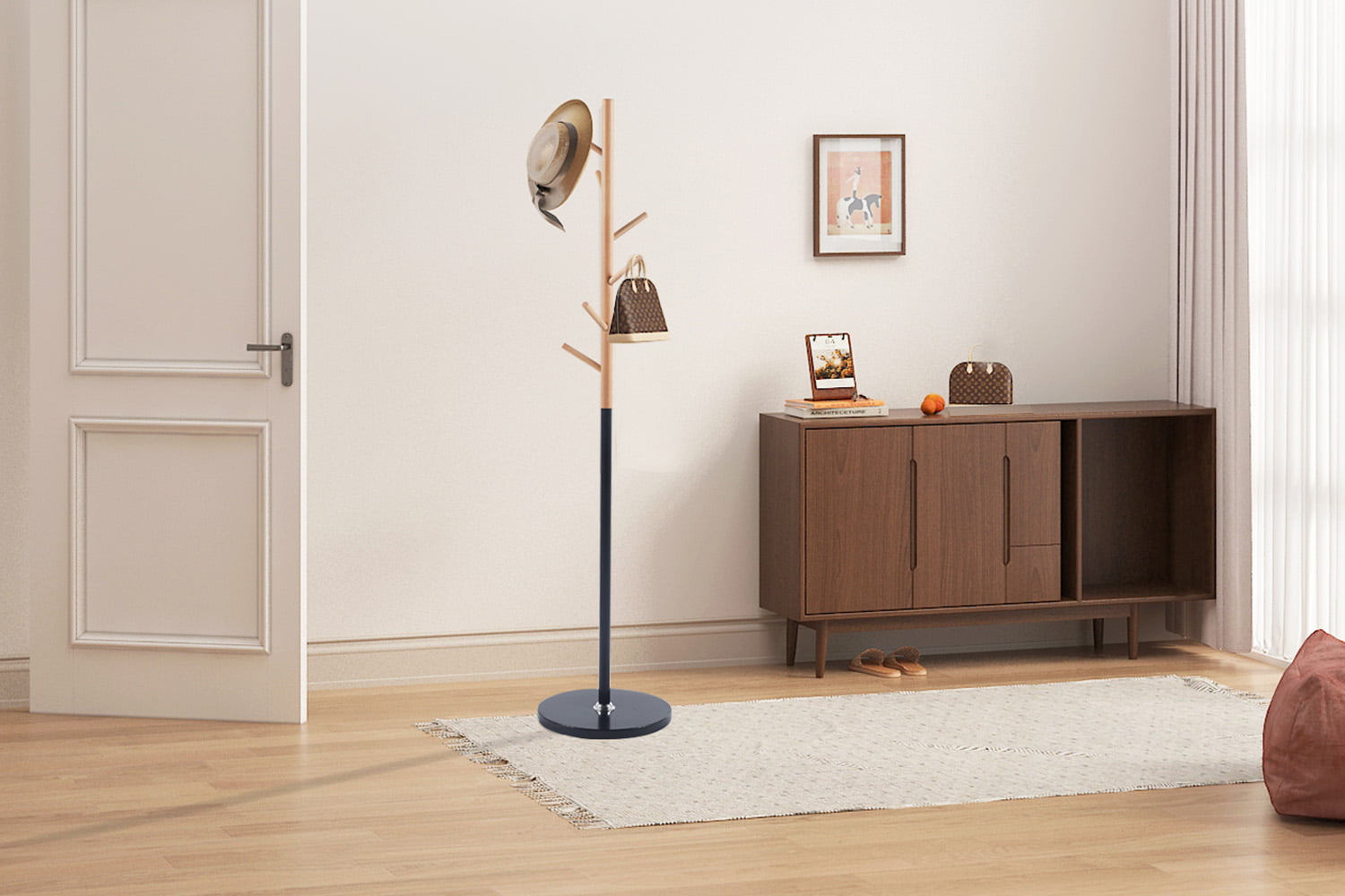 De stijlvolle afwerking zorgt ervoor dat de kapstok moeiteloos past in verschillende interieurstijlen. Dankzij het slimme ontwerp is de kapstok niet alleen functioneel, maar ook een aantrekkelijk decoratief element voor je ruimte.