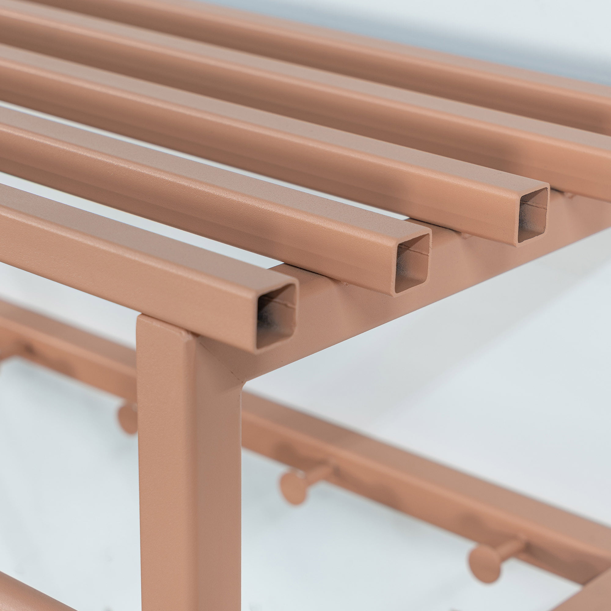Met deze zeer stevige kapstok ben je verzekerd van een lange levensduur, volledig vervaardigd van sterk staal afgewerkt met een stevige poedercoating. Voldoende ruimte voor alle jassen, tassen en sjaals aan één van de 10 haken of aan een kledinghanger op de kledingroede. Bovenop voldoende ruimte voor petten en/of hoeden. Ook handig voor kleine kinderen die zelf hun jas op kunnen hangen. Leuk te combineren met de andere artikelen uit deze serie.