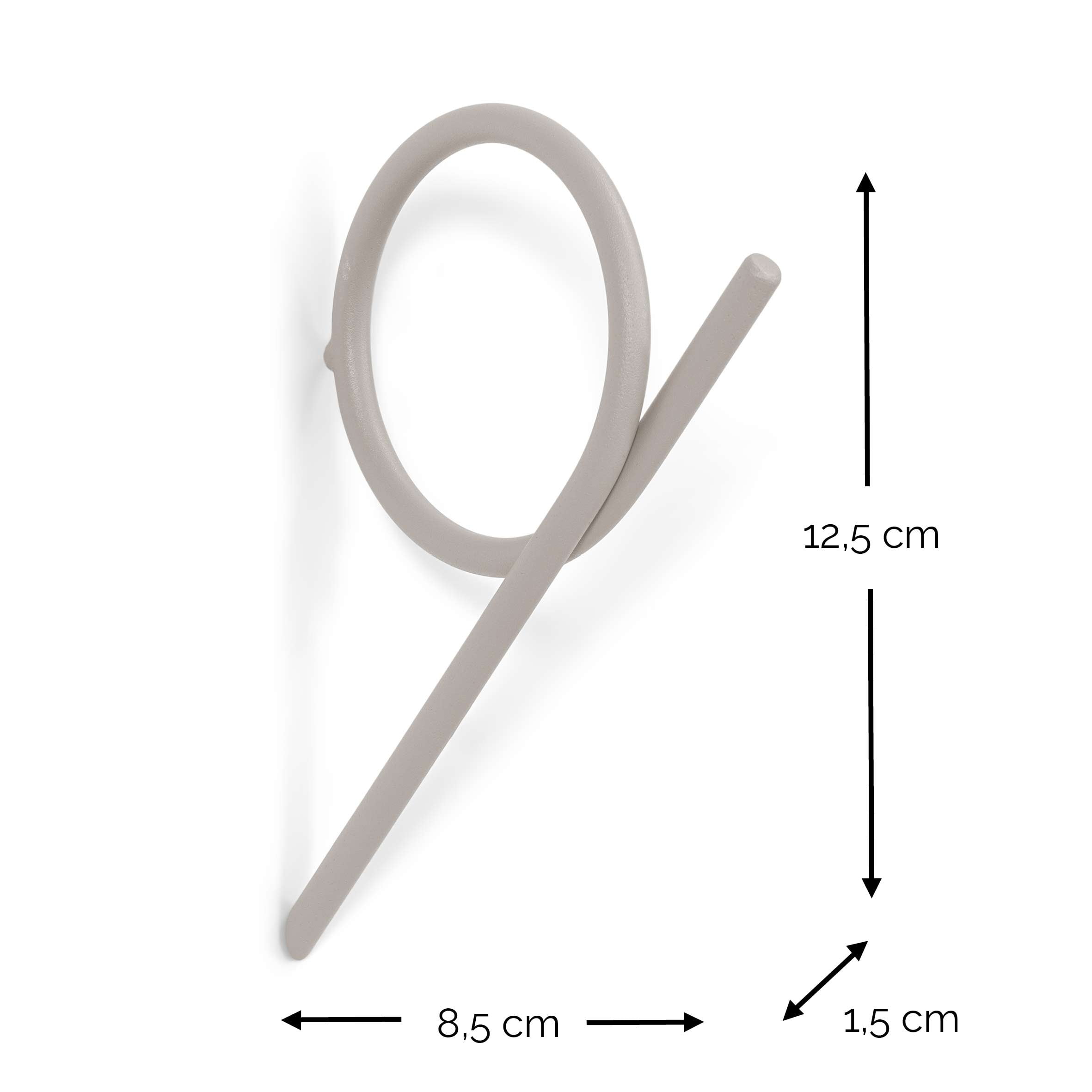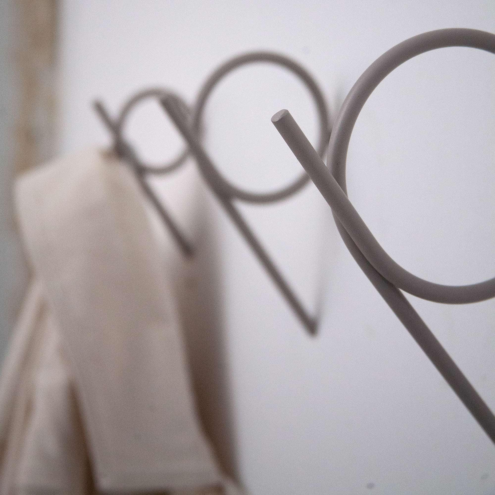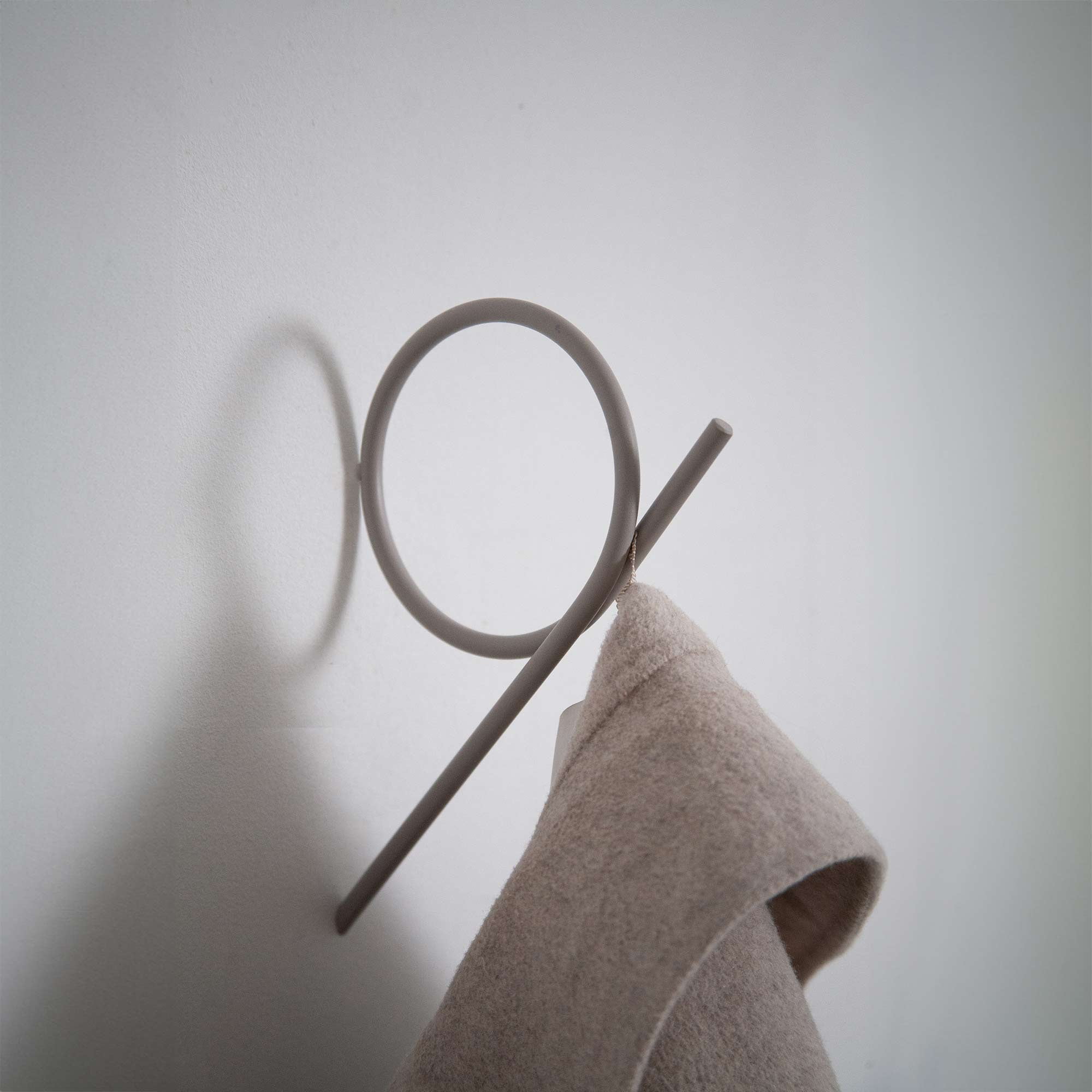 Deze moderne wandhaak combineert een speels design met functionele veelzijdigheid. Dankzij het gebogen ontwerp biedt de haak zowel aan de voorkant als via het cirkelvormige gat ophangmogelijkheden. De stevige stalen constructie zorgt voor extra stabiliteit en maakt deze haak een ideale toevoeging aan gangen, keukens of badkamers.