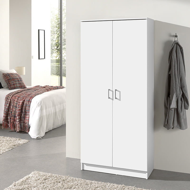 Deze handige en compacte kast biedt volop ruimte voor al je spullen, zowel toepasbaar in de slaapkamer als bijvoorbeeld je kantoor. Achter de openslaande deuren bevinden zich 4 legplanken. De kast is vervaardigd uit stevig plaatmateriaal, gemakkelijk te monteren en is door zijn eenvoud toepasbaar in elk interieur. De kast is verkrijgbaar in meerdere kleuren en afmetingen.