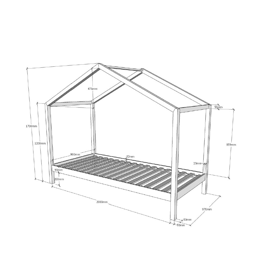 Dit huisbed is door zijn minimalistische design toepasbaar in elk interieur. Het bed is vervaardigd uit massief grenen en geschikt voor elke matras van 90×200 cm. De lattenbodem is. Door de balken te gebruiken om slingers, vlaggetjes of lampjes aan op te hangen maak je de kinderkamer direct gezellig! Ook te combineren met een lade voor een opgeruimde kinderkamer of een slaapplaats voor alle vriendjes. Verkrijgbaar in verschillende uitvoeringen.