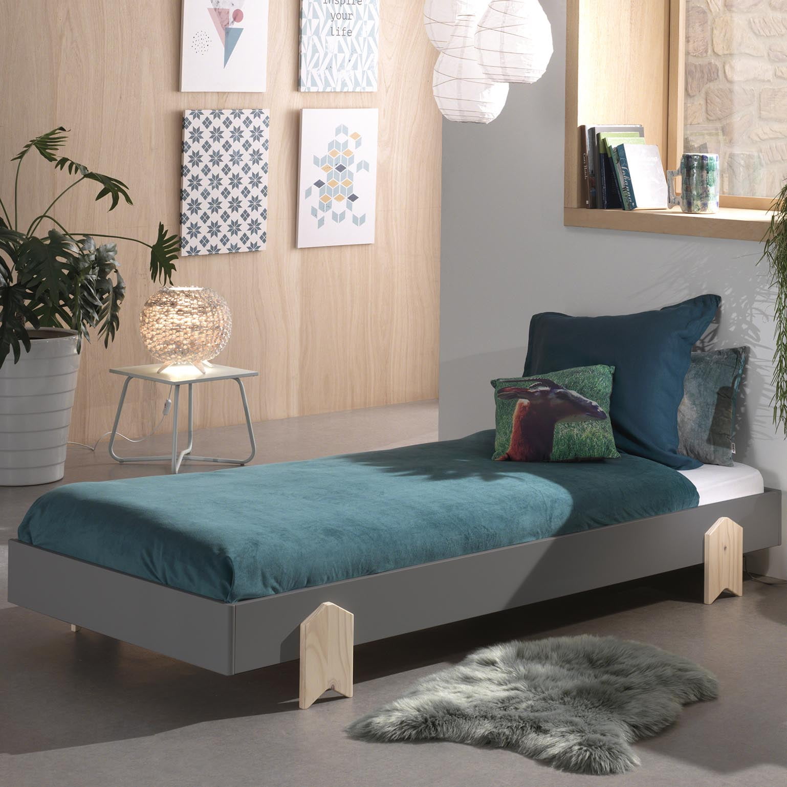 Met dit zeer handige stapelbare bed heb je altijd voldoende slaapplaatsen. Het bed is vervaardigd uit een combinatie van massief grenen en MDF en is grijs gelakt. Het bed is gemakkelijk stapelbaar waarbij de matrassen kunnen blijven liggen. De bedden zijn inclusief lattenbodem. De massieve poten zijn in de vorm van een pijl.