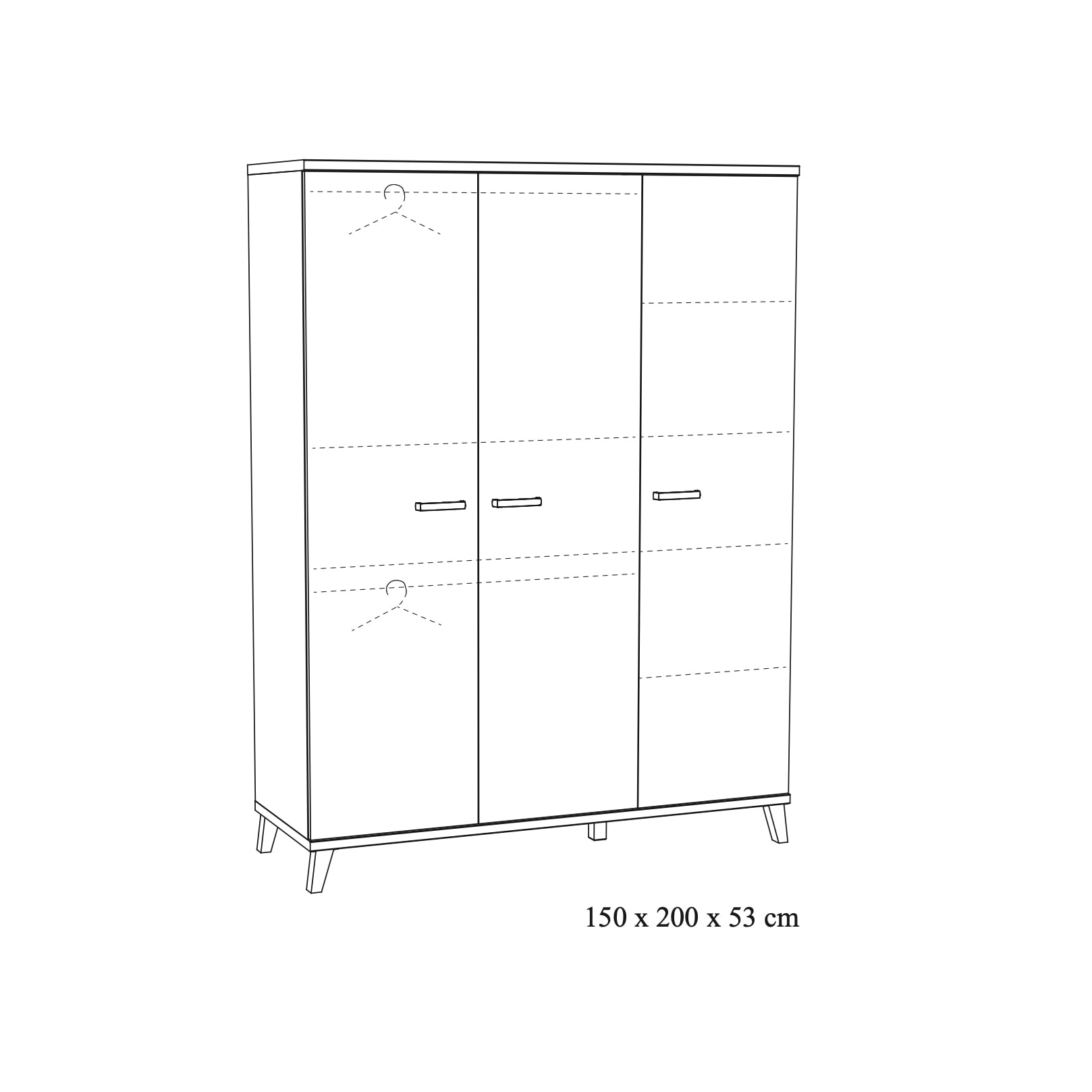 De Kledingkast Finn 3-deurs Eiken is een ruime en praktische opbergoplossing voor de babykamer. Met afmetingen van 150x200x53 cm biedt deze kast voldoende ruimte voor de groeiende garderobe van je kleintje.
