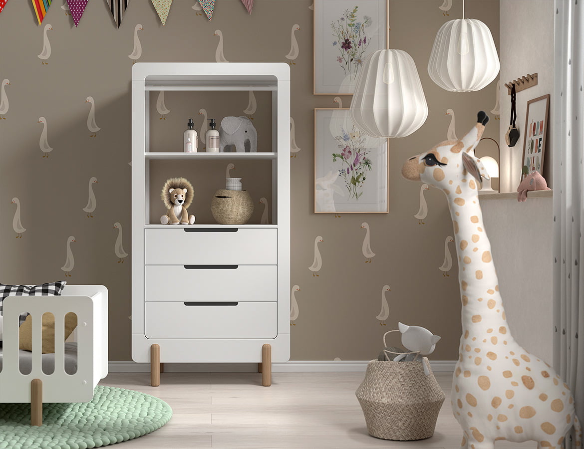 Deze witte kast van – is een praktische en stijlvolle toevoeging aan elke babykamer. Met zijn strakke ontwerp en drie ruime lades biedt deze kast voldoende opbergruimte voor kleding, luiers en andere babybenodigdheden.
