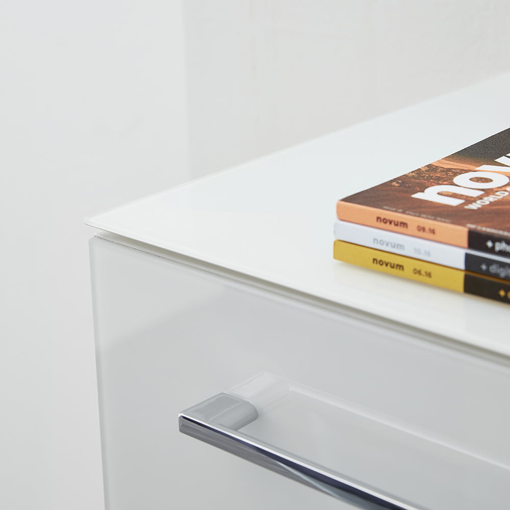 Want de bureaumeubelserie Destin is een chique lijn kantoormeubelen die helemaal geschikt is voor het thuiskantoor. Het bijzondere aan deze kantoormeubelen is dat op alle deuren en bladen een witte gehard glazen plaat is gemonteerd. Dat geeft een lichte spiegeling en diepte, maar ook een enorm cachet aan deze meubellijn.