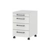 Dit moderne ladeblok heeft vier soepele lades om al uw kantoorartikelen op te bergen. Daarbij is het ladeblok makkelijk verrijdbaar vanwege de wieltjes waarvan u er twee kunt vastzetten zodat het ladeblok vast komt te staan. De metalen handvatten geven het ladeblok een stoere design uitstraling.