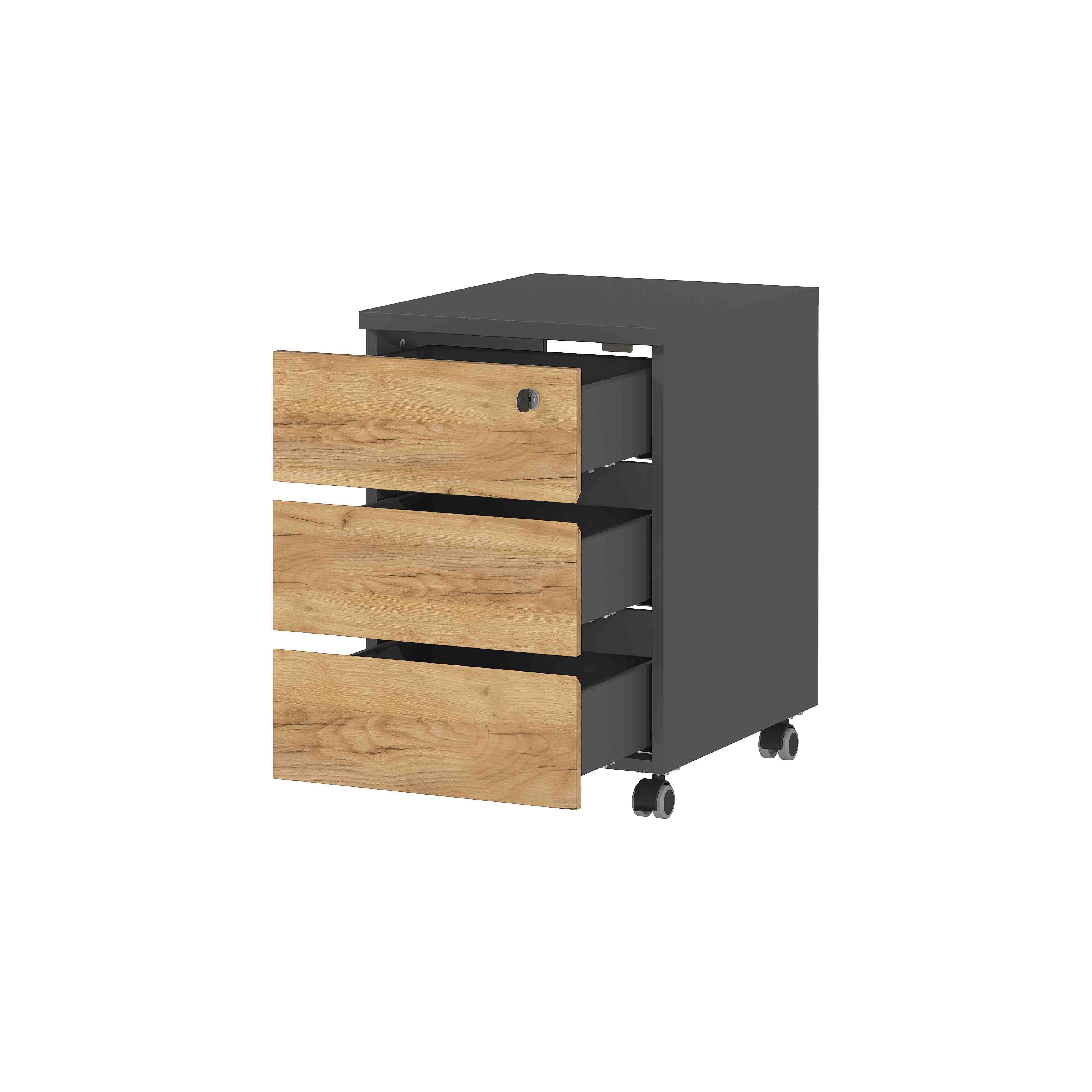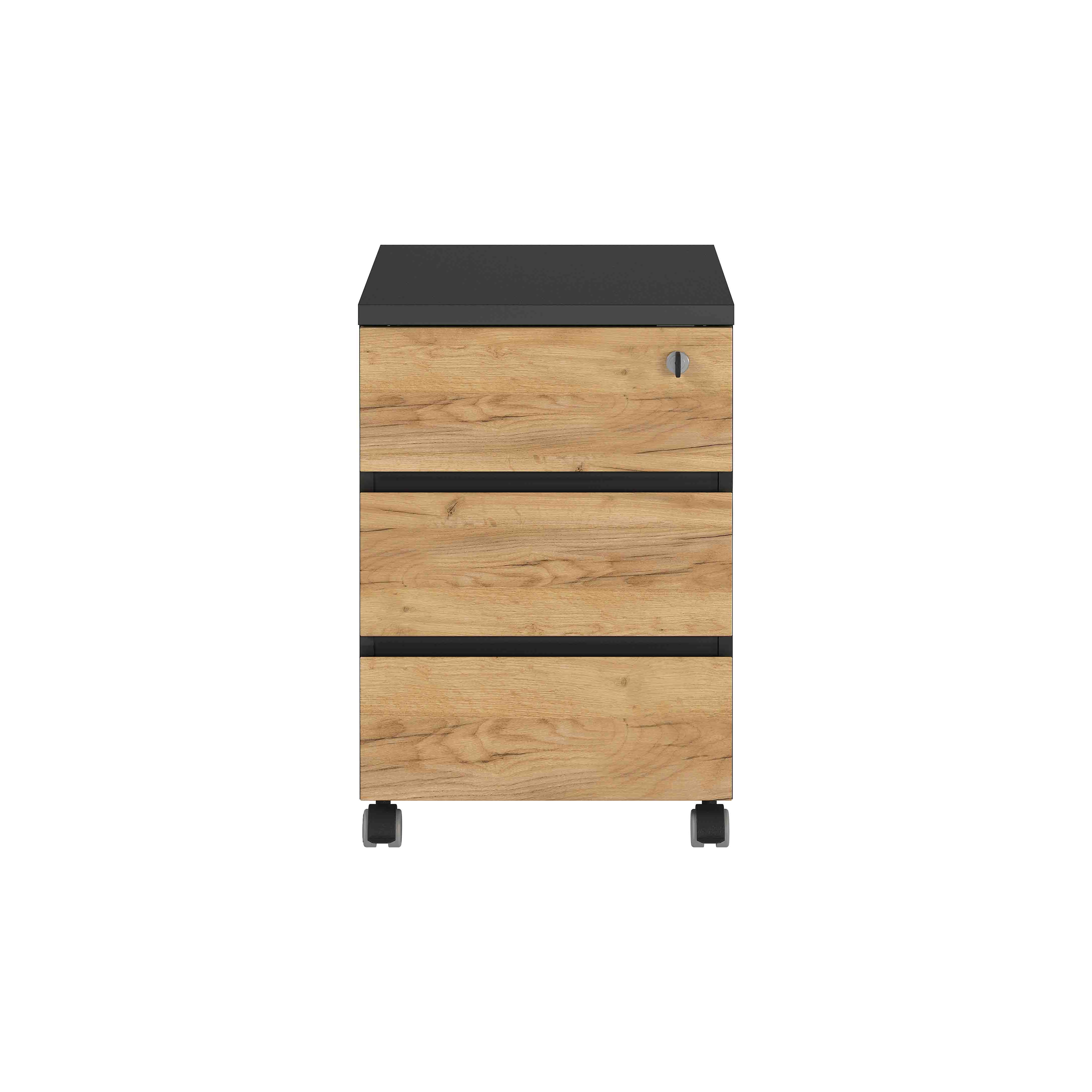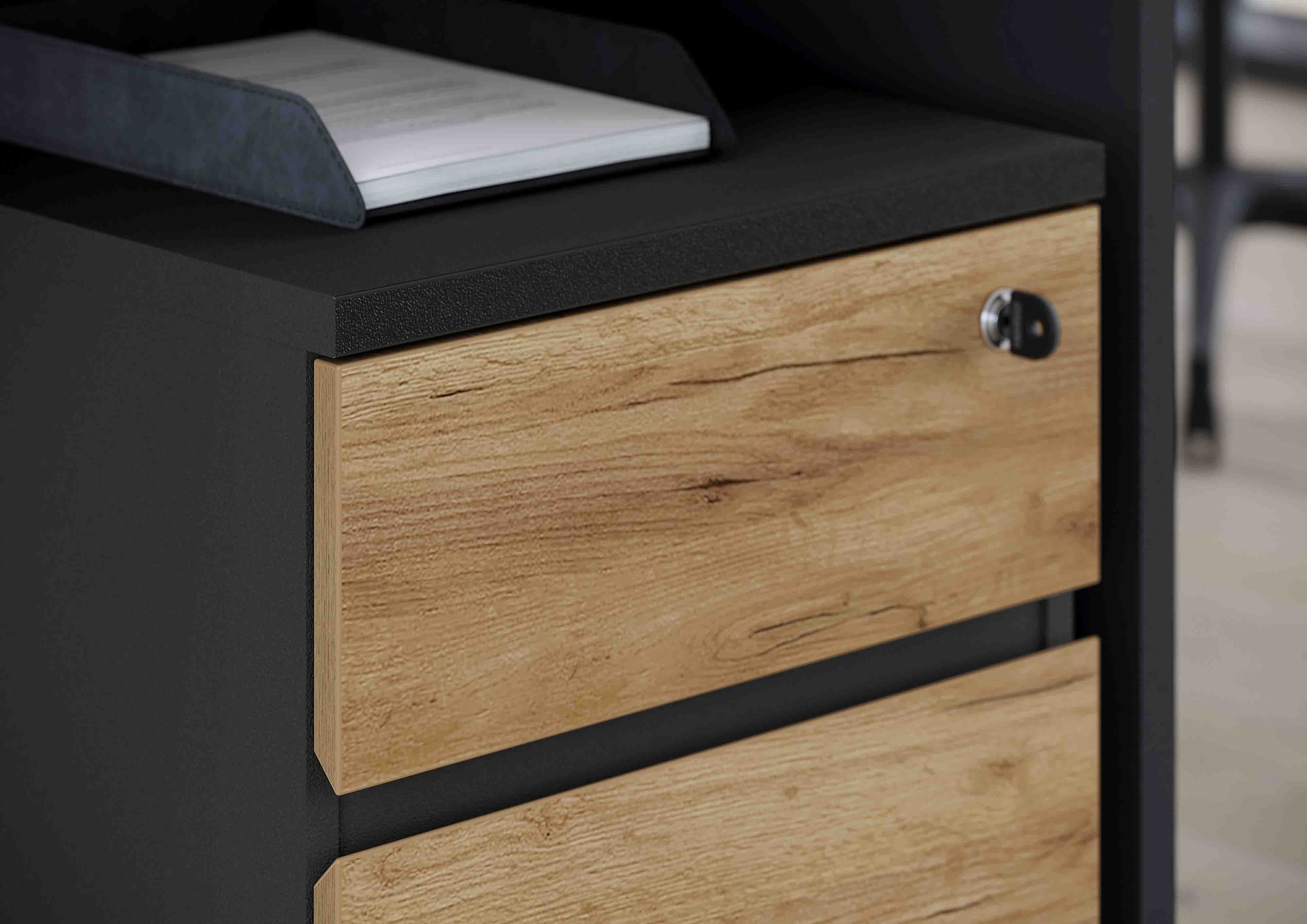 Dit degelijke ladeblok heeft een warme uitstraling dankzij de gebruikte kleurencombinatie. Voldoende ruimte in de 3 laden voor het opbergen van allerlei kantoorartikelen, de bovenste lade kan worden afgesloten. De laden sluiten geruisloos en de randen van het ladeblok zijn afgewerkt met ABS-kantafwerking waardoor deze tegen een stootje kunnen. Gemakkelijk te monteren door middel van bijgeleverd montagehandleiding. Bekijk de andere elementen uit deze serie en richt je kantoor in één keer helemaal in!