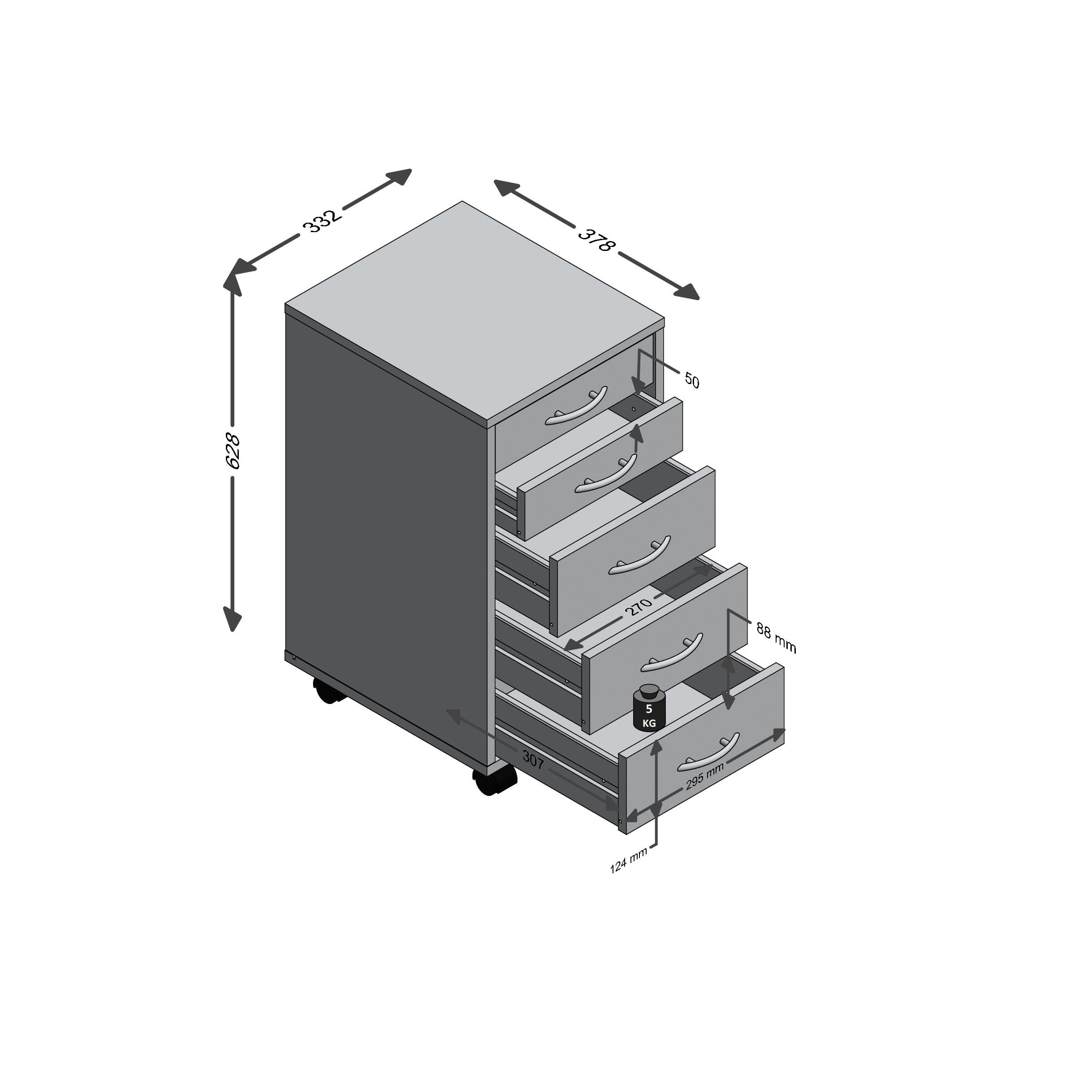 Liggen er op en rond jouw bureau ook altijd spullen? Met dit ladeblok ben je hier snel vanaf! Dit ladeblok heeft 2 smallere laden en 3 ruimere laden om al je spullen in op te bergen. Het ladeblok is vervaardigd uit een stevige spaanplaat en afgewerkt met een sterke melamine. Eenvoudig te monteren door middel van de bijgeleverde montagehandleiding.