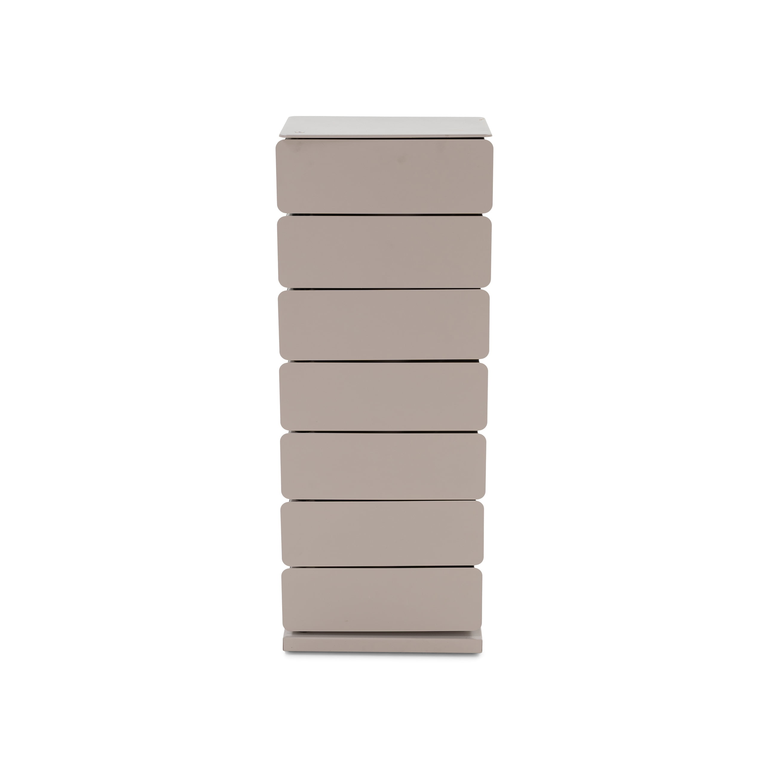 Voeg een minimalistisch en multifunctioneel design toe aan je interieur met de Ladekast Coco Taupe 99 cm – een stijlvolle toevoeging als nachtkastje of opbergmeubel!