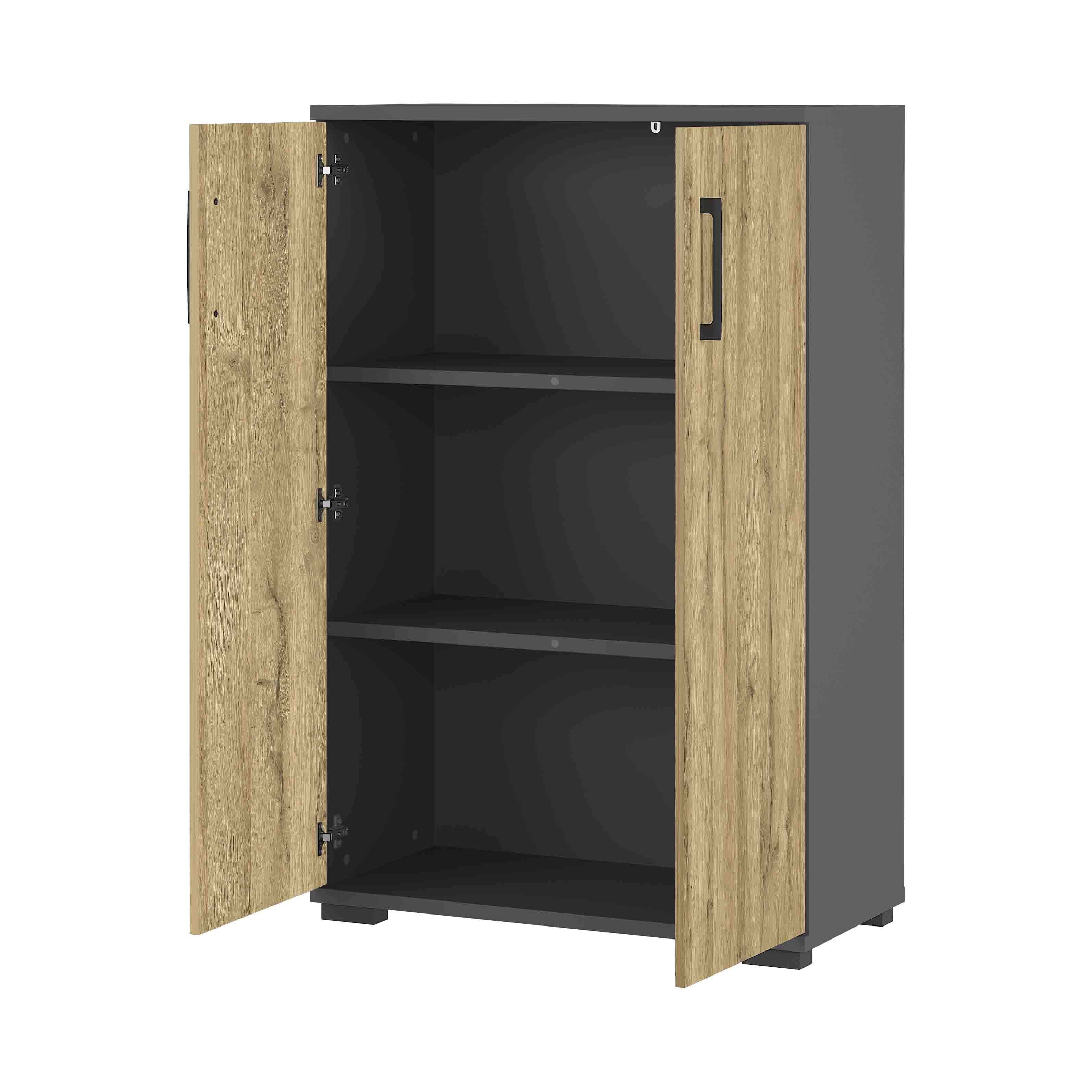 Deze lage dichte kantoorkast is 80cm breed, 123cm hoog en 40cm diep en heeft achter de twee openslaande deuren twee legplanken. Deze kast is uitermate geschikt voor het opbergen van ordners, mappen of boeken en biedt veel opbergruimte voor al uw andere (kantoor)spullen.