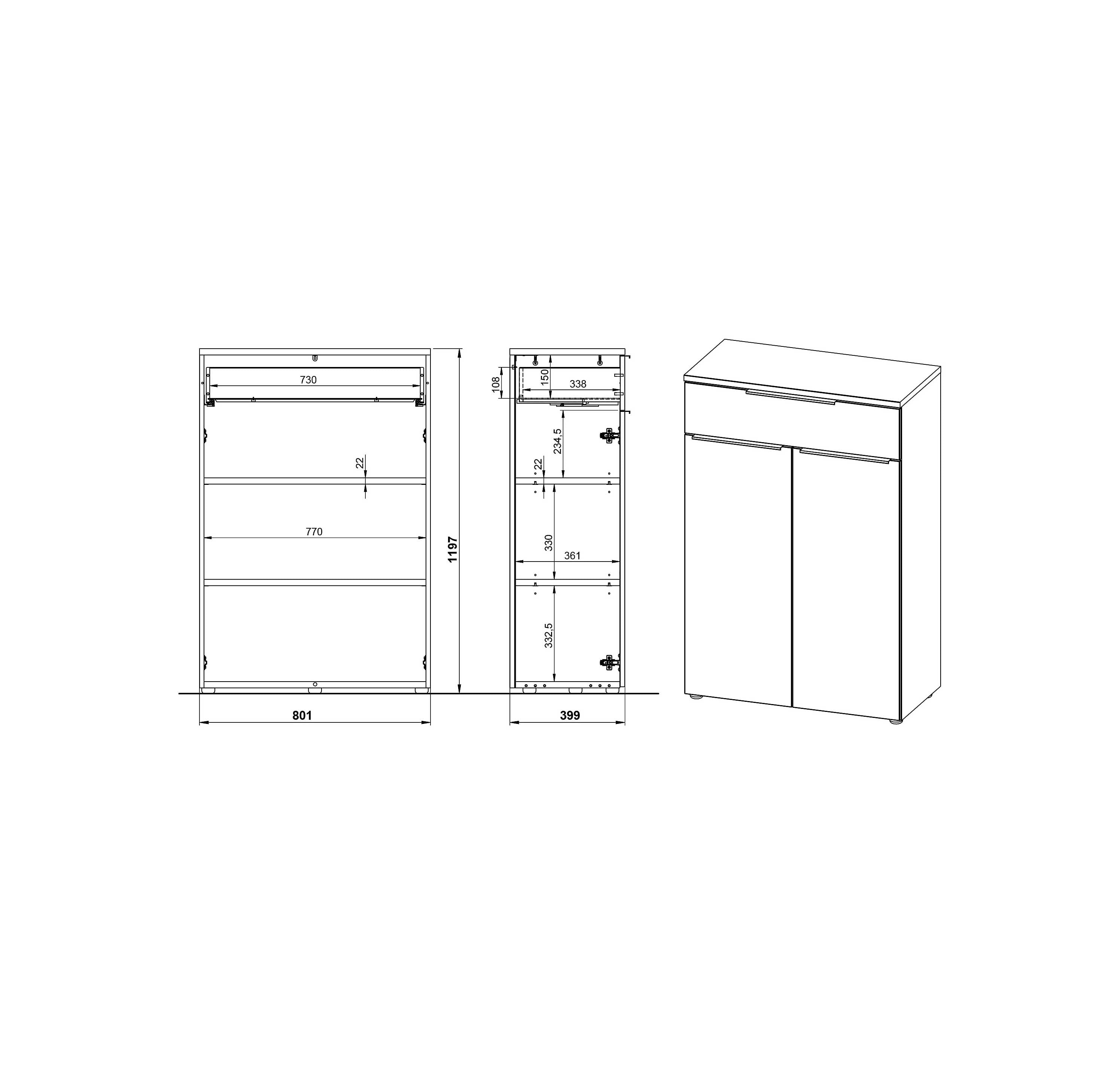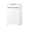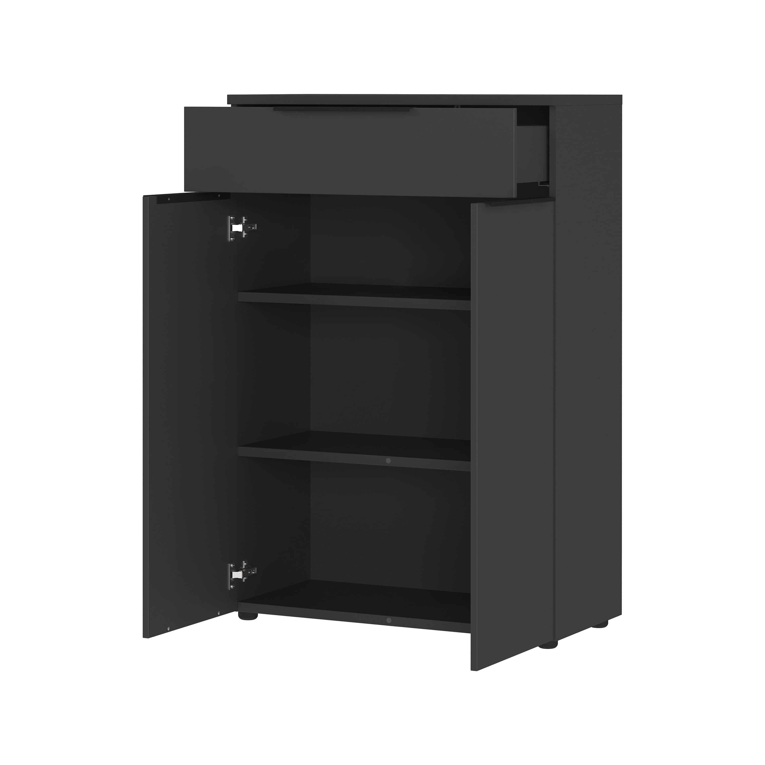 Met één lade en twee deuren biedt deze kast voldoende ruimte om documenten, kantoorbenodigdheden en andere materialen op te bergen. Achter de deuren bevinden zich twee verstelbare planken, elk belastbaar tot 10 kg, waardoor verschillende opbergconfiguraties mogelijk zijn.