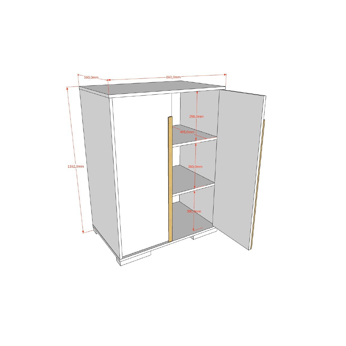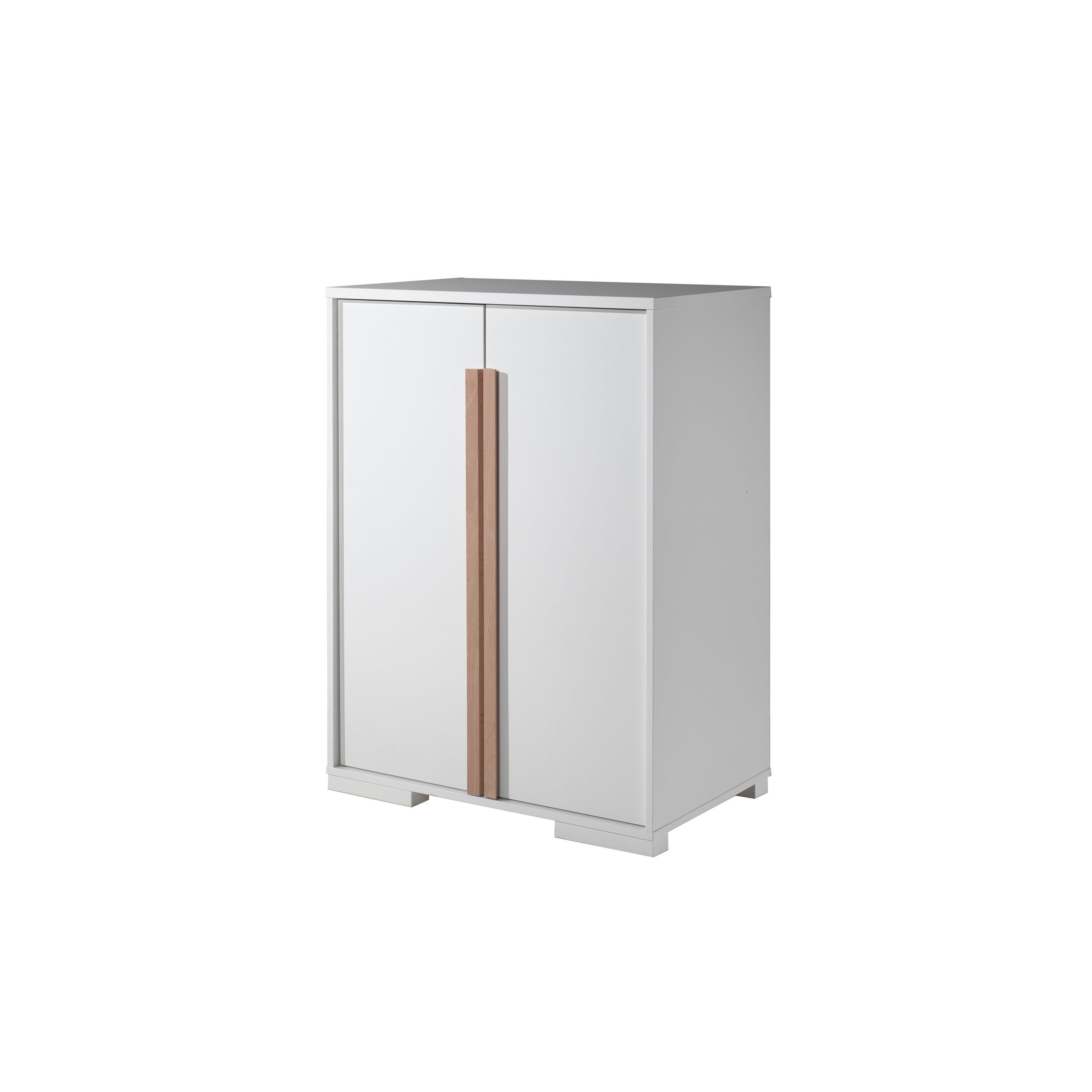 Deze handige tweedeurskast biedt voldoende ruimte voor al je kleren. Achter de openslaande deuren bevinden zich twee vaste. De kast is vervaardigd uit een stevige vezelplaat en afgewerkt in een sterke melamine. De deuren zijn voorzien van soft-close. Leuk te combineren met de andere meubelen uit deze serie.