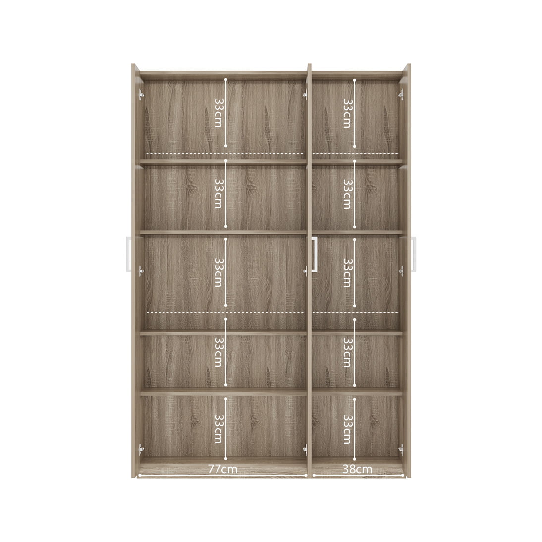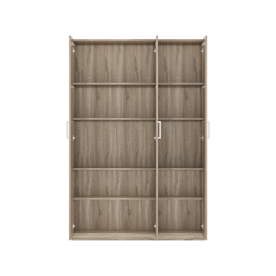 Deze handige opbergkast is enkel 120 centimeter breed waardoor deze gemakkelijk overal geplaatst kan worden. Achter de dubbele deuren bevinden zich 5 legplanken waarvan 3 verstelbaar. Achter de enkele deur bevinden zich wederom 5 legplanken waarvan 4 verstelbaar. De kast is vervaardigd van een stevige spaanplaat en afgewerkt met een sonoma decor. Verkrijgbaar in verschillende afmetingen.