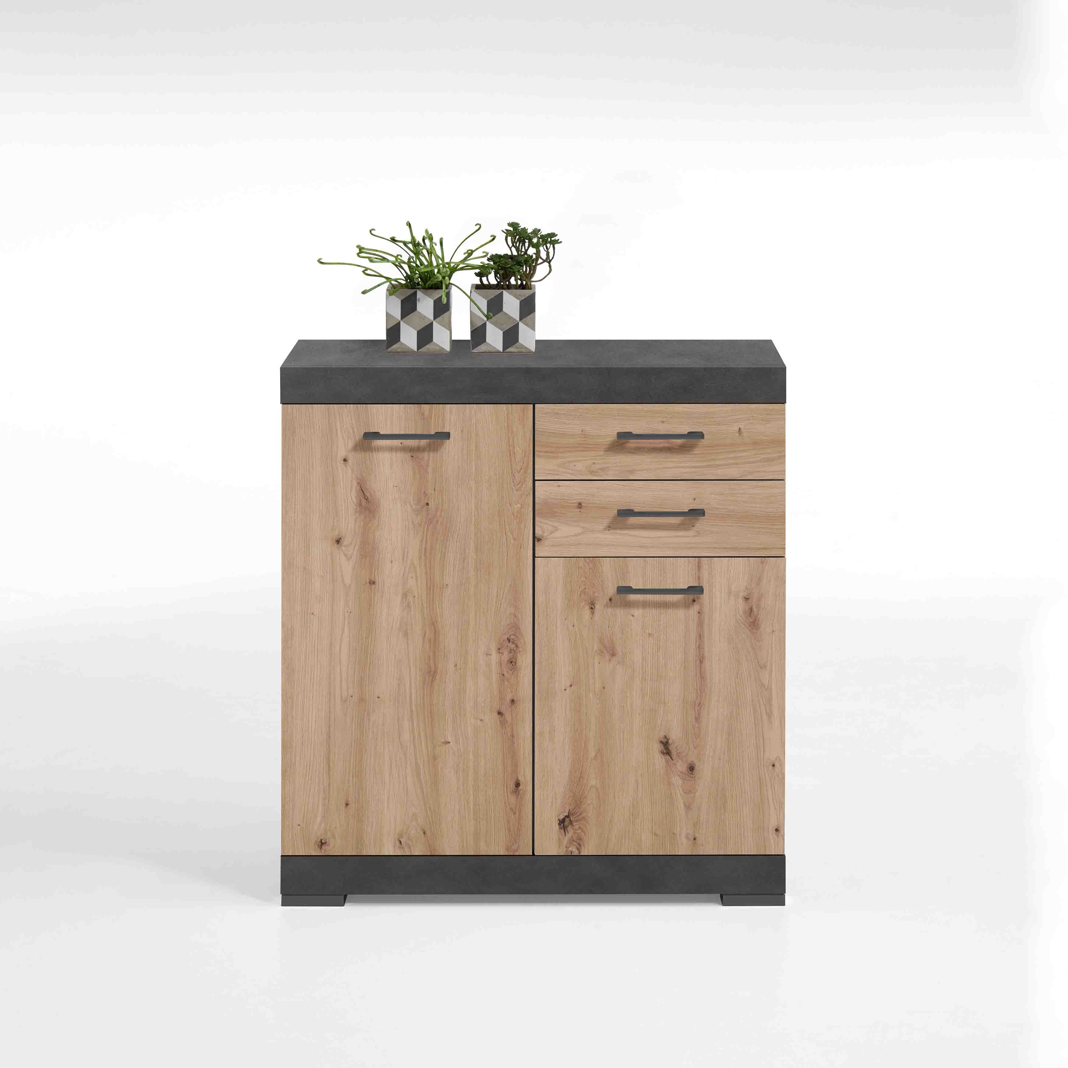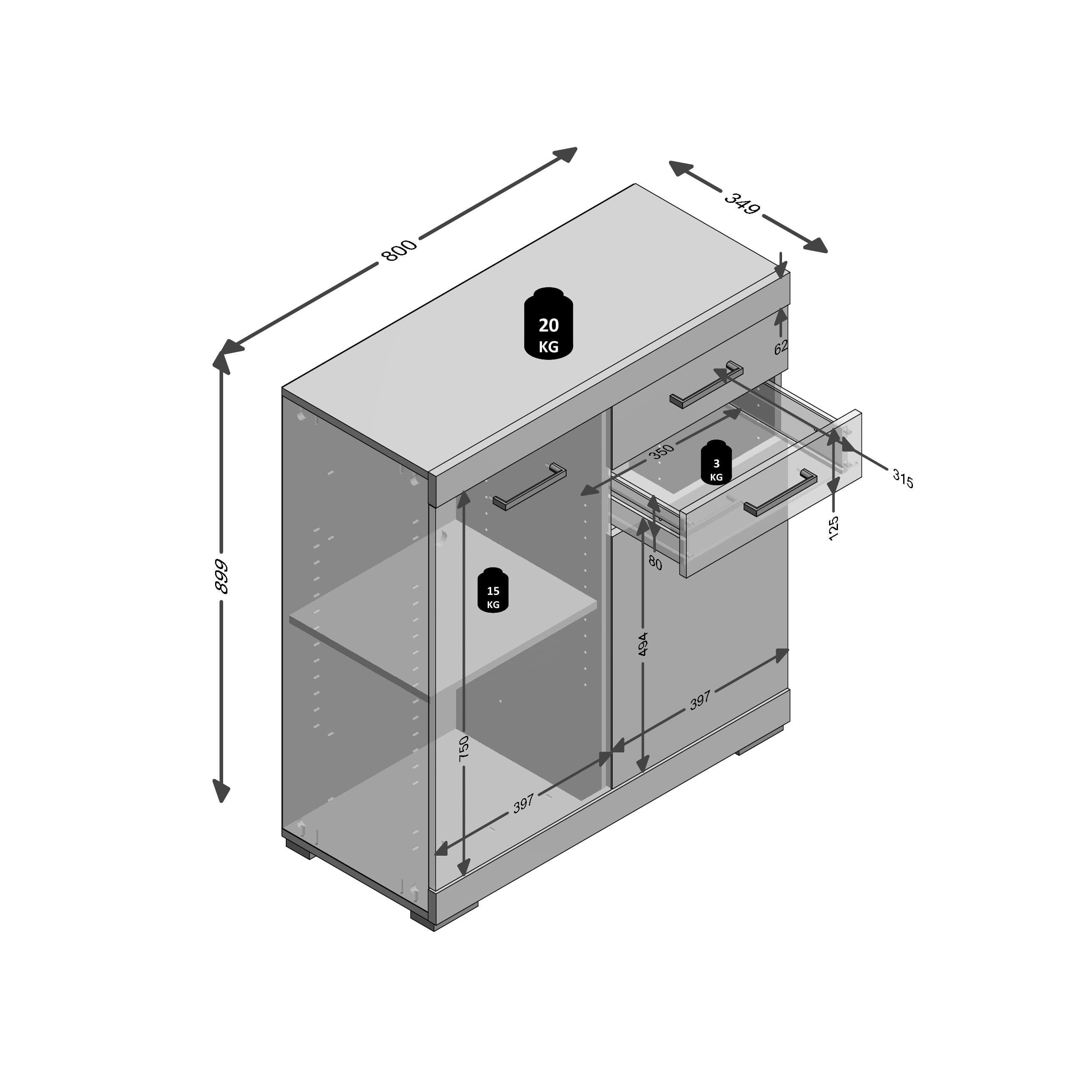 Deze handige opbergkast kun je dankzij zijn handige afmetingen gemakkelijk kwijt in je woonkamer, kantoor of keuken. Achter elke deur bevindt zich 1 verstelbare legplank, in combinatie met de 2 lades heb je voldoende opbergruimte. Bovenop de kast kun je nog enkele leuke accessoires kwijt. Deze kast is vervaardigd uit een stevige spaanplaat en afgewerkt met een sterke melamine. Eenvoudig te monteren door middel van de bijgeleverde montagehandleiding. Bekijk ook de bijpassende artikelen uit deze serie!