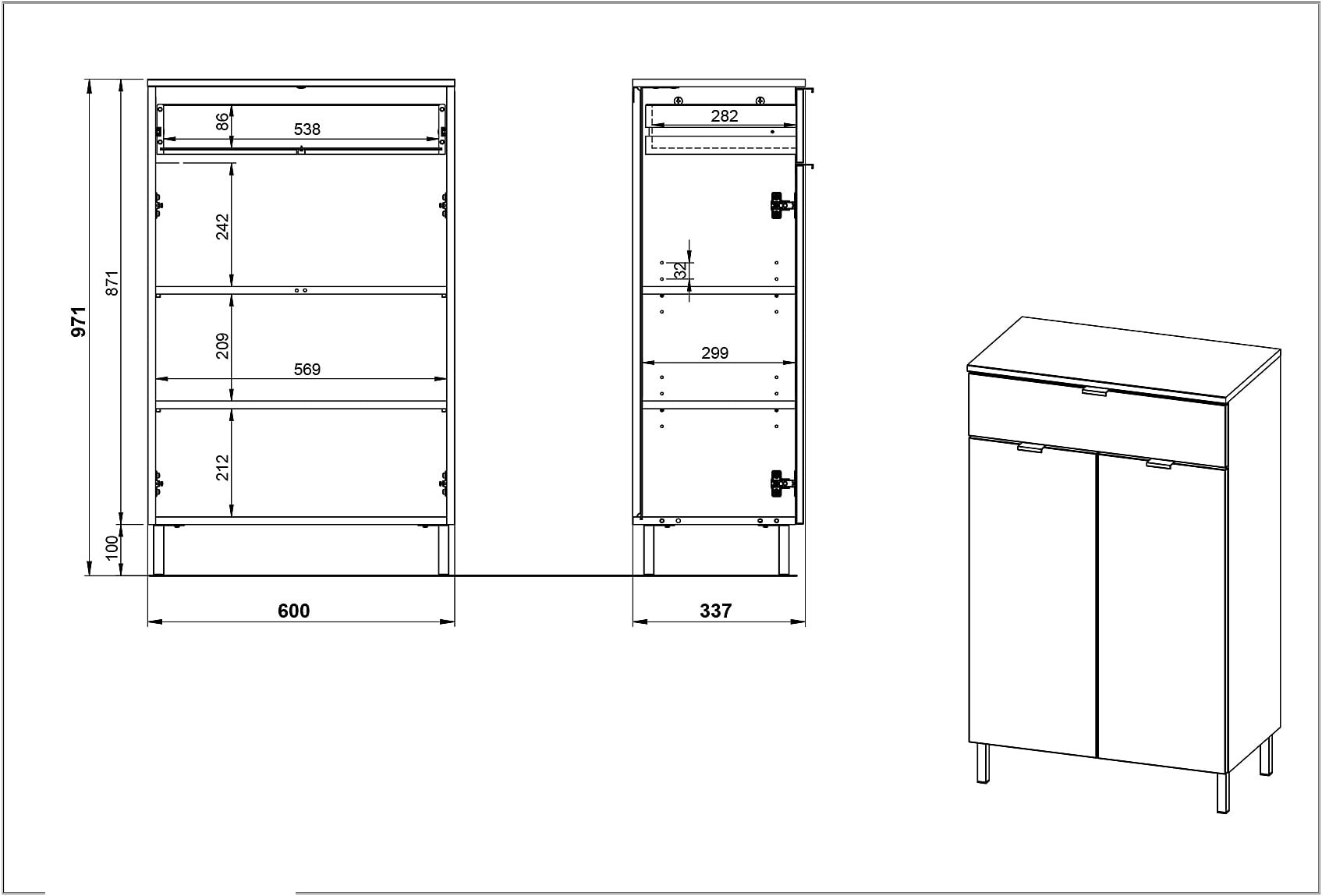 - Afmetingen: 60 x 97 x 34 cm (B x H x D)