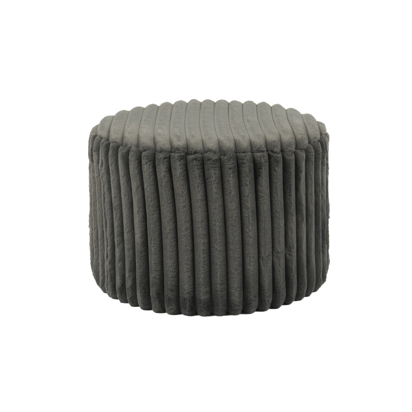 Deze stijlvolle donkergrijze kruk in brede riblook geeft je interieur een moderne en elegante touch. De zachte faux fur stof biedt niet alleen een comfortabele zitervaring, maar voegt ook een luxe textuur toe.