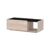 Het tijdloze ontwerp van de Salontafel Paxos Eiken wordt versterkt door de combinatie van een zwart tafelblad en eikenhouten afwerking. De melamineharscoating en hoogwaardige ABS-randen zorgen voor een krasbestendige en duurzame afwerking die lang meegaat.