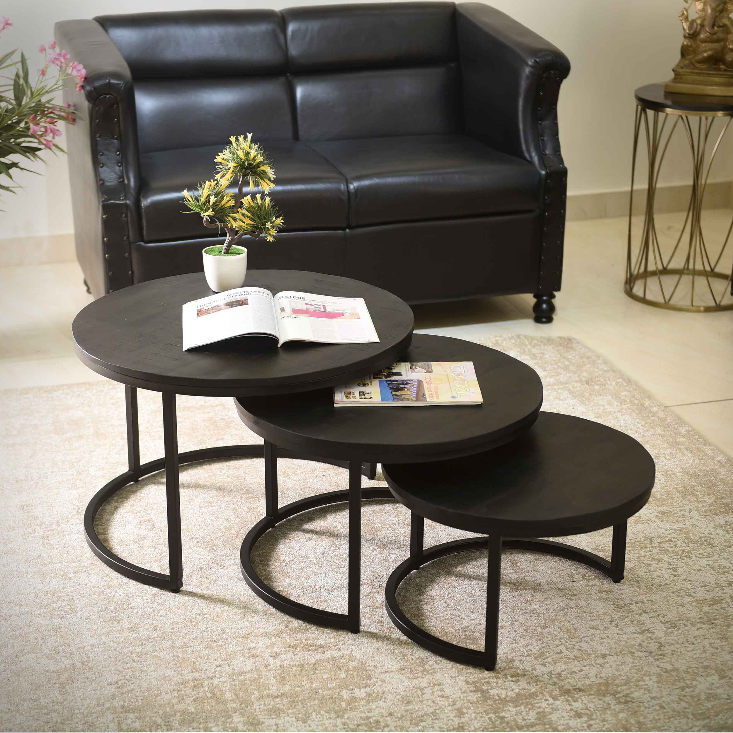 Deze luxe salontafel set heeft een houten blad in combinatie met een zwart metalen onderstel. Door zijn afmetingen kun je de set zowel onder elkaar als naast elkaar plaatsen. Voldoende ruimte voor al je spullen. Ook verkrijgbaar als set van 2. De tafels hebben de volgende afmetingen: