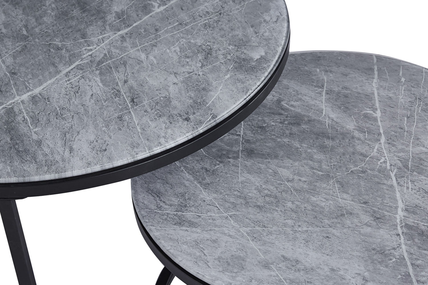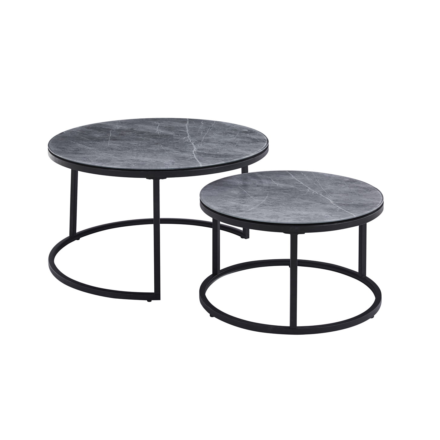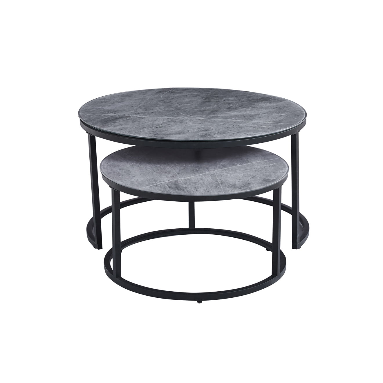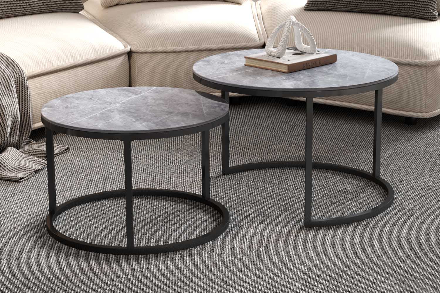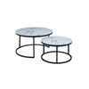 Creëer een oase van stijl en ontspanning met de salontafelset Fréderique in grijs marmerlook!
