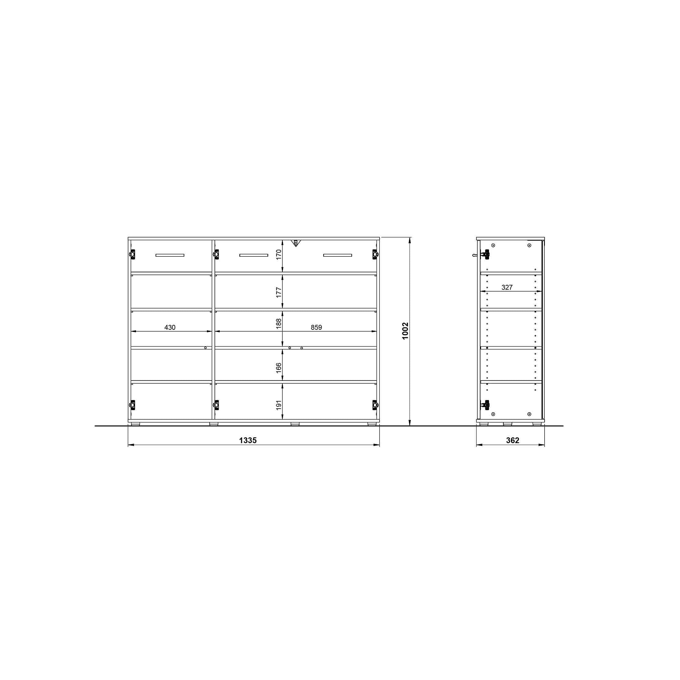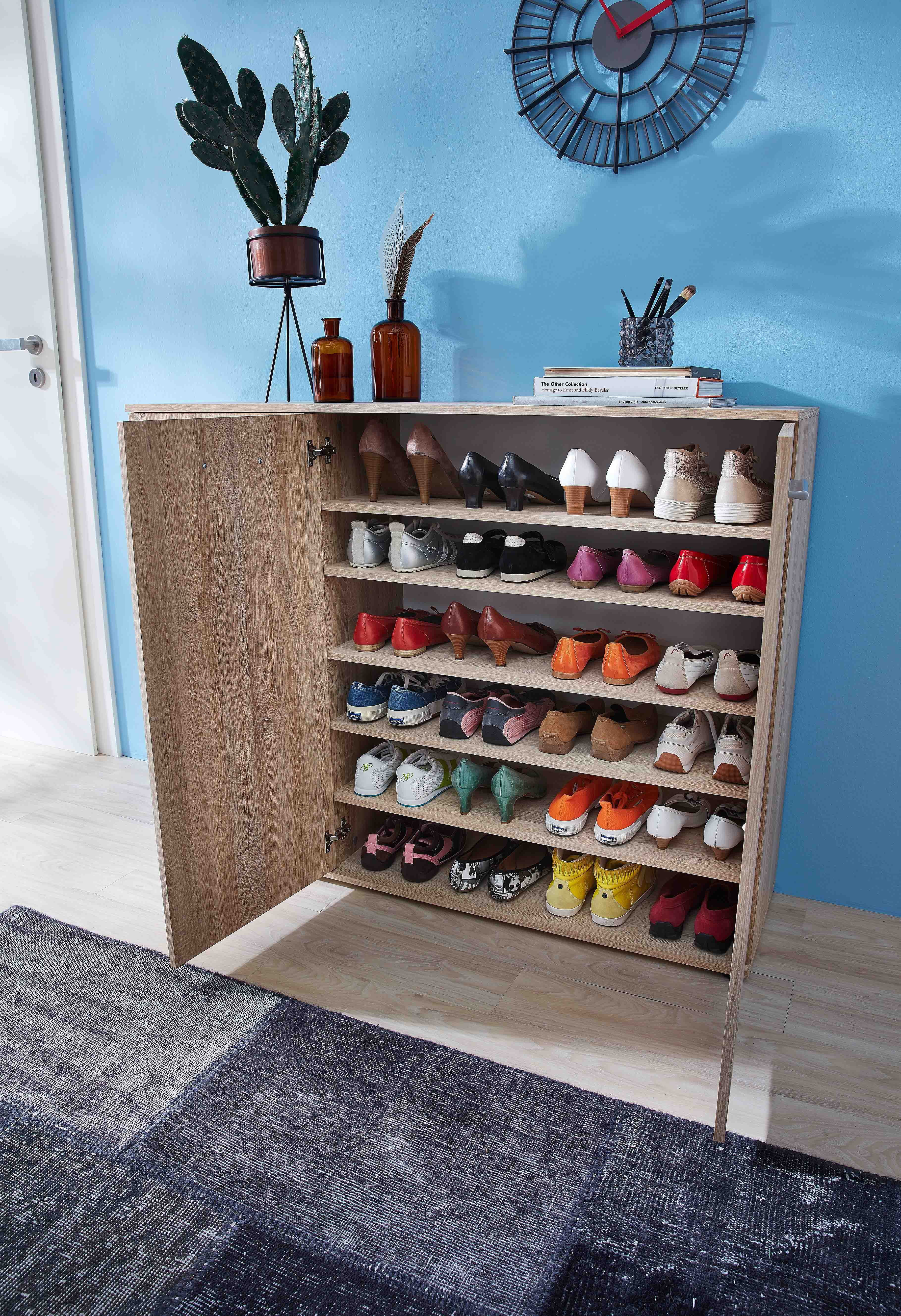 Met deze handige schoenenkast ben je snel voorzien van voldoende opbergruimte voor ongeveer 32 paar schoenen. Achter de deuren bevinden zich 2 vaste en 6 verstelbare legplanken. Eenvoudig te monteren met behulp van een duidelijke montagehandleiding.