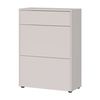 De kast beschikt over twee kleppen en één lade, elk met een draagkracht tot 10 kg. Daarnaast zijn er twee verstelbare planken aanwezig. Het bovenblad kan tot 20 kg dragen en het onderblad tot 10 kg. In totaal is er ruimte voor maximaal 10 paar schoenen. Dankzij push-to-open open je alles met een lichte druk.