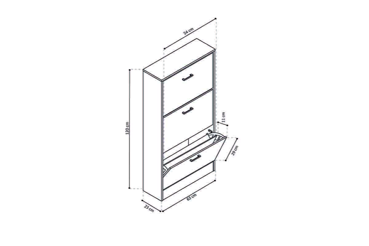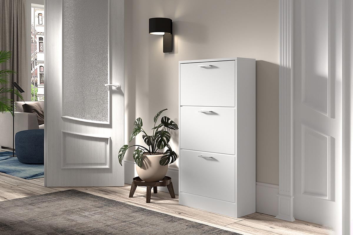 Deze handige schoenenkast vindt zijn plek in elke hal vanwege zijn minimaal benodigde diepte. De kast heeft 3 kleppen met ruimte voor 6 tot 9 paar schoenen. Verkrijgbaar in meerdere kleuren.