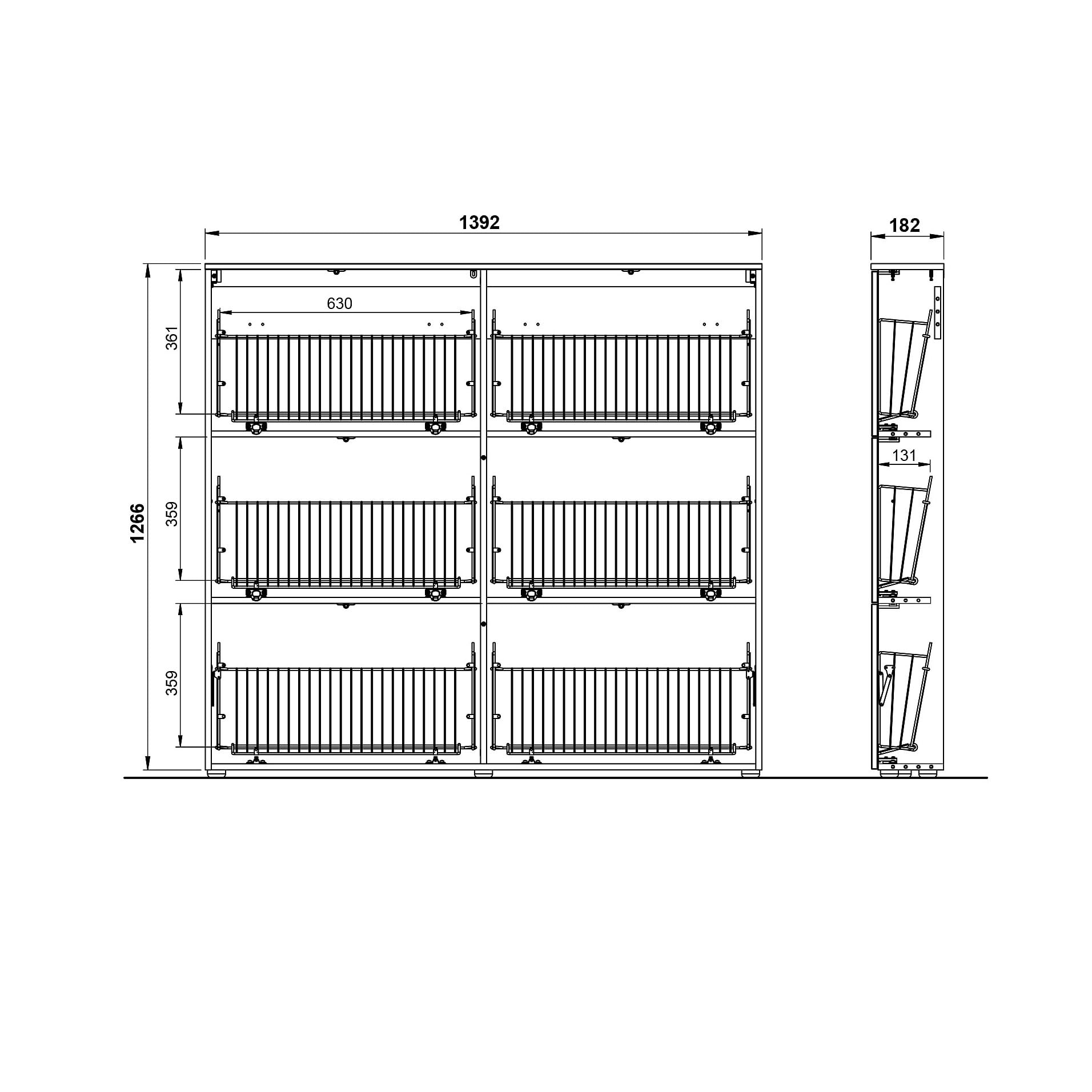 • Efficiënte opslag van schoenen dankzij metalen schoenmanden