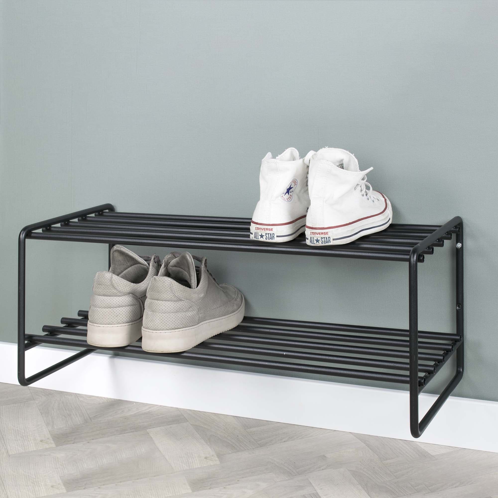Met dit stijlvolle schoenenrek is je gang in een mum van tijd weer opgeruimd! Ruimte voor meerdere paar schoenen, gemaakt van metaal en afgewerkt met een sterke zwarte lak.