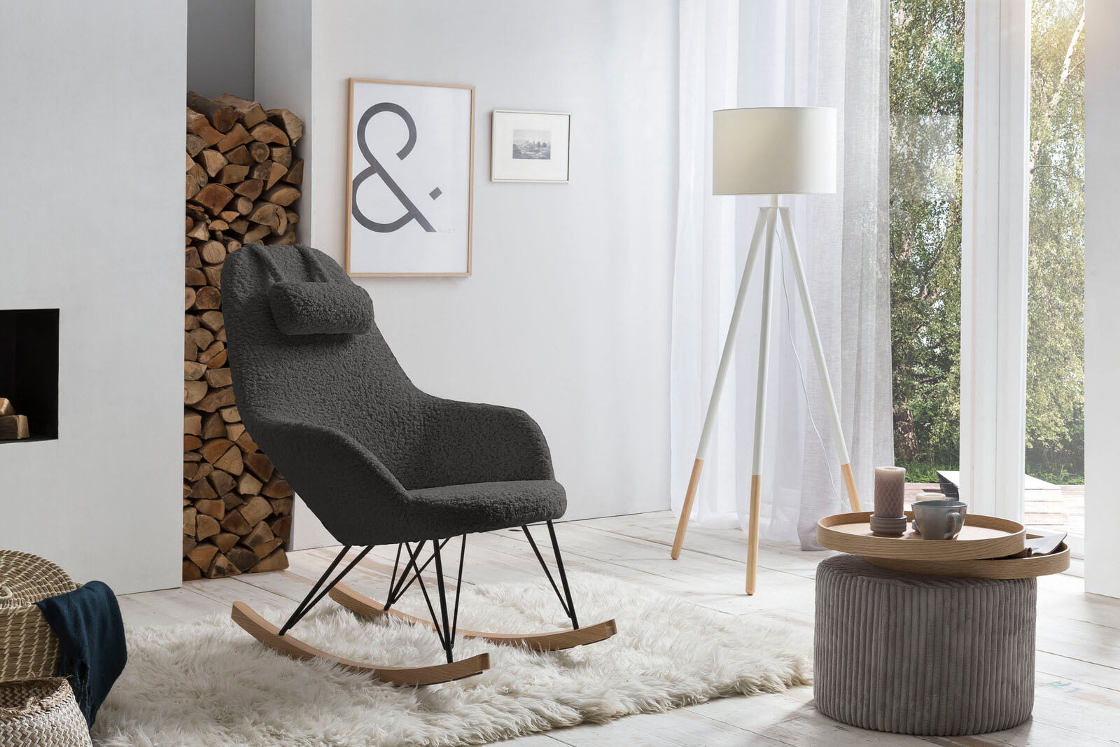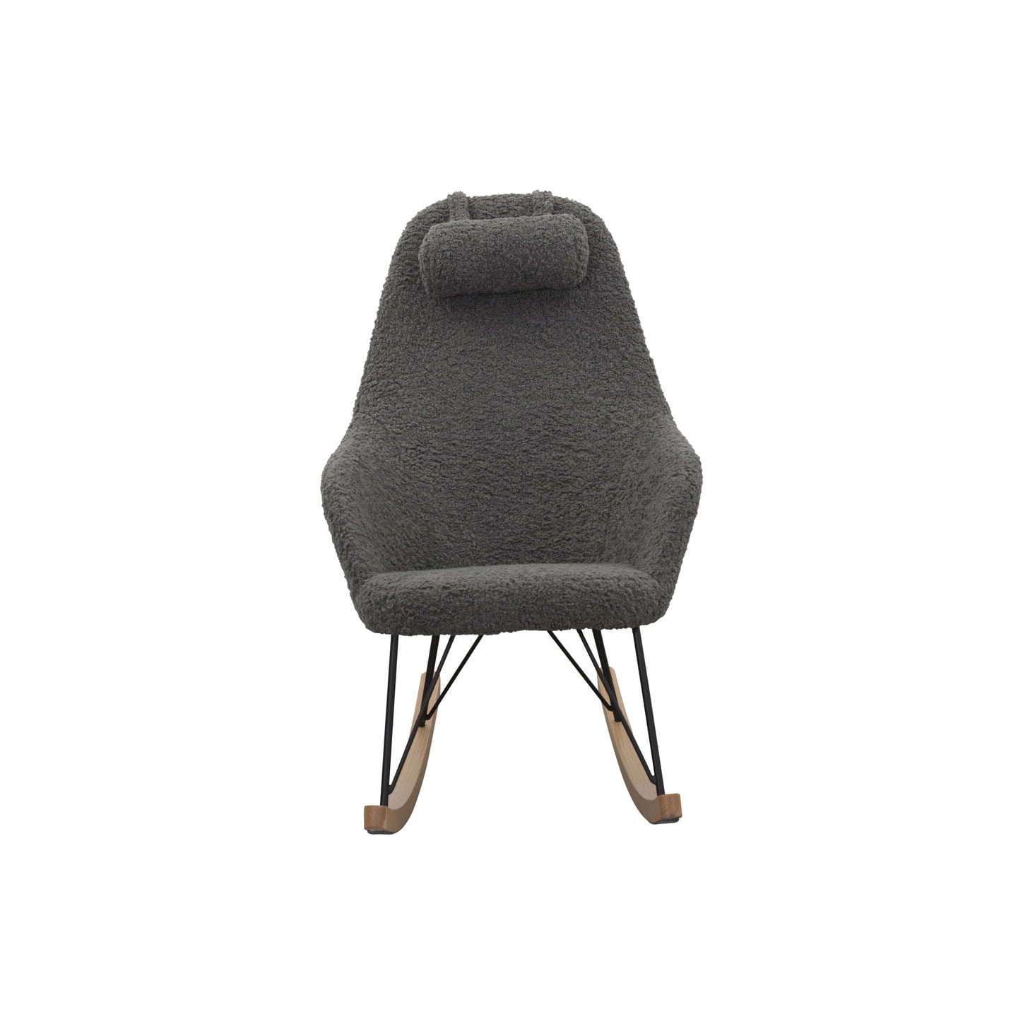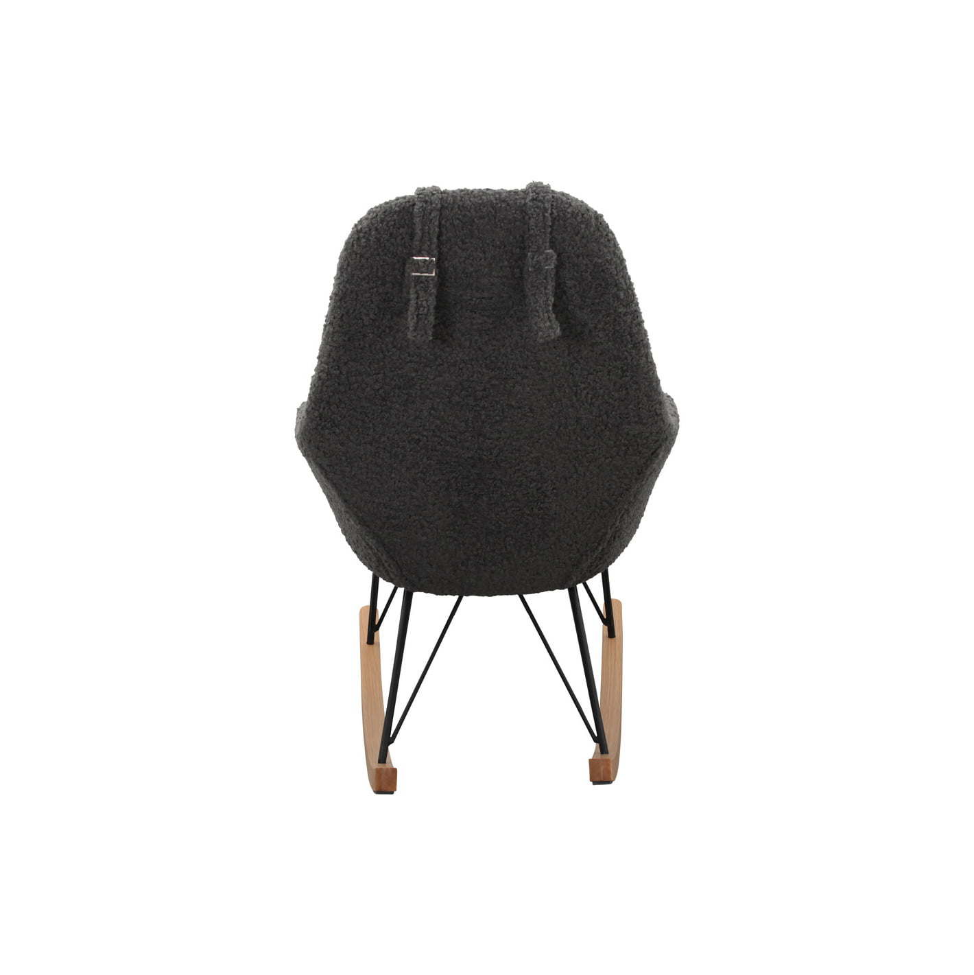In deze schommelstoel rust je helemaal uit! Door zijn ontwerp ben je van een goed zitcomfort verzekerd. Het stevige frame is gemaakt van zwart gepoedercoat metaal. De stoel is gestoffeerd met een teddy bont stof. De schommelstoel heeft een zithoogte van 46 centimeter, een zitbreedte van 45 centimeter en de zitdiepte is 53 centimeter.