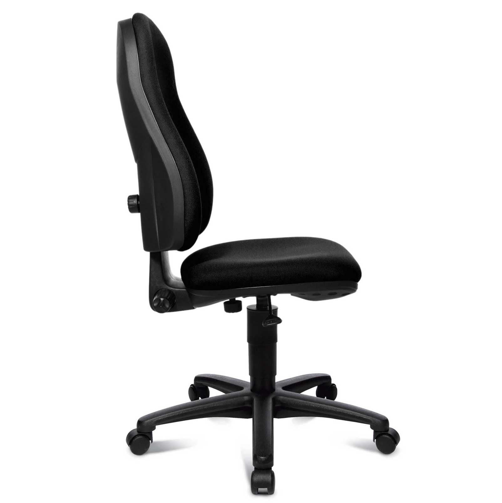 Opvallend aan deze bureaustoel is de comfortabele rug die gestoffeerd is met een zwarte weefstof en een ingebouwde rugwervel ondersteuning heeft. Ook aan de vormgeving van de achterzijde is aandacht besteed want die is afgewerkt met een mooi vormgegeven kunststof schelp. De stoel is uitgerust met een permanent contact systeem zodat je altijd in elke zithouding ondersteuning van de rugleuning hebt. Ook de schuinte van de achterrug is instelbaar. De voet is van met glasvezel versterkt Polyamide. Deze bureaustoel is standaard uitgerust met wielen voor zachte vloeren. Wielen voor harde vloeren zijn apart te bestellen. Zie bijpassende producten voor de juiste wielen. Voor deze bureaustoel zin optioneel armleuningen te bestellen.