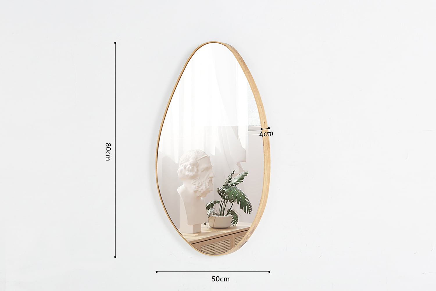Gemaakt van duurzaam MDF met een mooie eiken afwerking, biedt deze spiegel zowel functionaliteit als een elegante uitstraling. Met een diepte van slechts 0,8 cm past hij moeiteloos op smalle muren zonder te veel ruimte in te nemen.