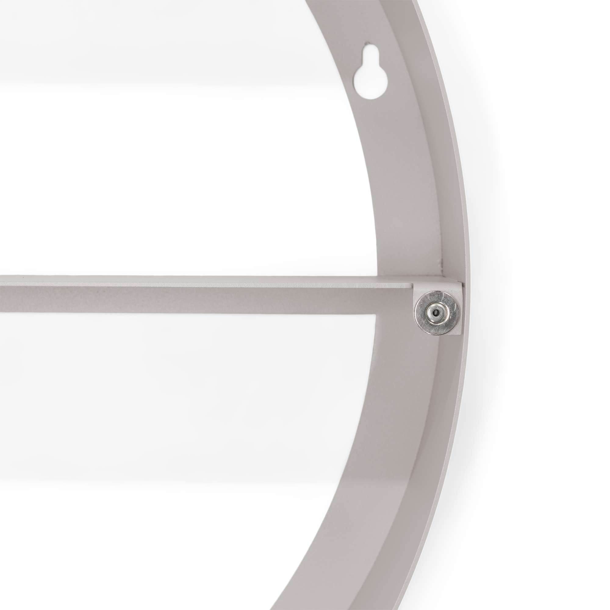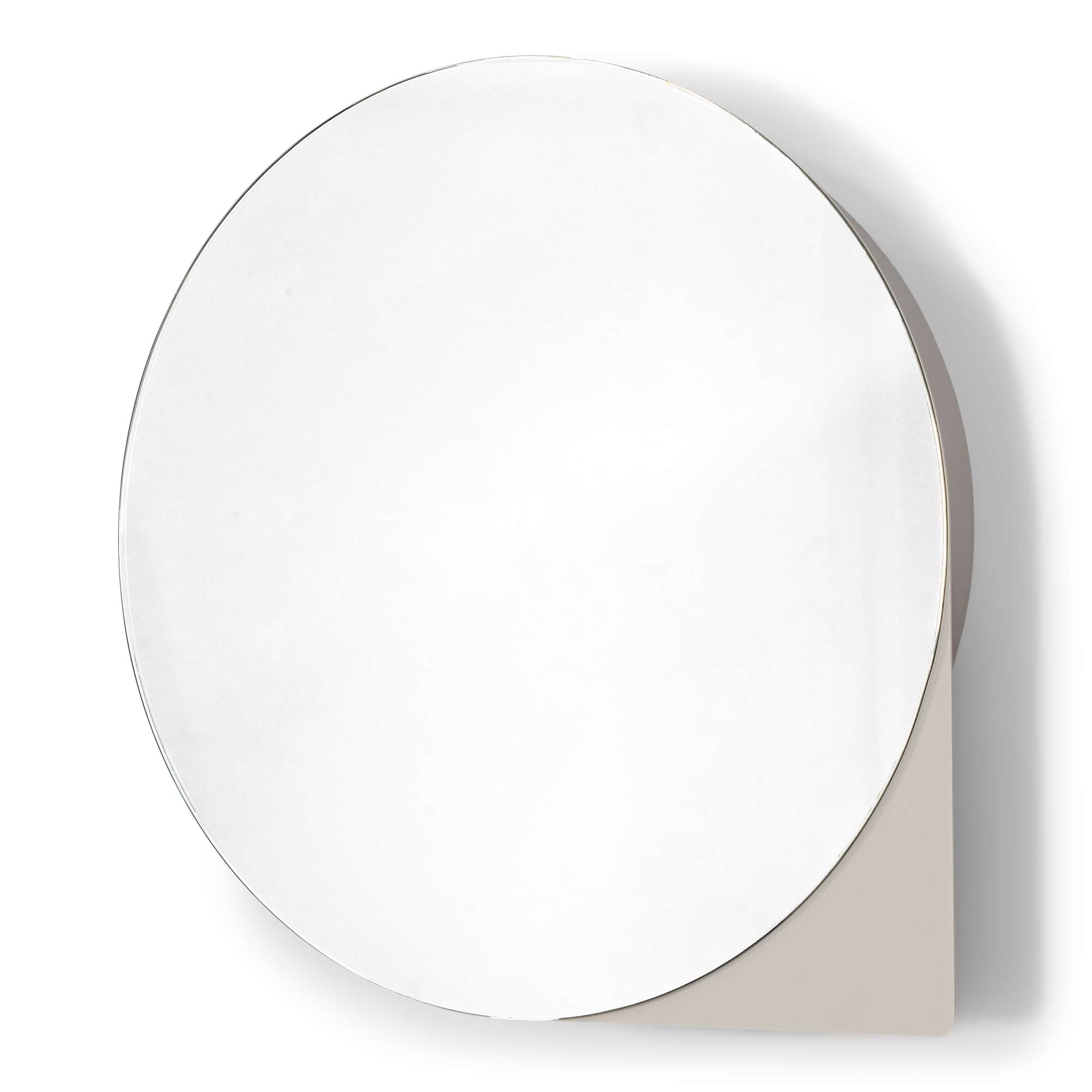 Deze stijlvolle spiegelkast combineert een moderne uitstraling met praktische opbergruimte. De ronde spiegel is voorzien van een subtiele decoratieve rand, wat zorgt voor een speels en elegant effect. Achter de spiegel bevindt zich opbergruimte met meerdere planken, ideaal voor sleutels, accessoires of kleine gebruiksvoorwerpen.