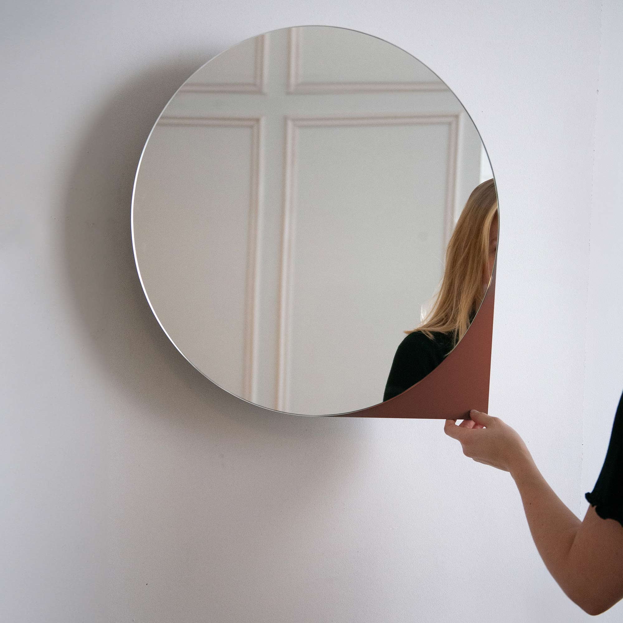 Deze stijlvolle spiegelkast combineert een moderne uitstraling met praktische opbergruimte. De ronde spiegel is voorzien van een subtiele decoratieve rand, wat zorgt voor een speels en elegant effect. Achter de spiegel bevindt zich opbergruimte met meerdere planken, ideaal voor sleutels, accessoires of kleine gebruiksvoorwerpen.