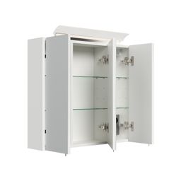 De Spiegelkast Calais Wit Hoogglans 120 cm is een royale en elegante badkamerkast, ontworpen in Duitsland. Dit meubel, gemaakt van een degelijke spaanplaat en afgewerkt met een glanzende witte lak, geeft je badkamer een frisse en luxueuze uitstraling. Met 6 glazen planken en 2 spiegeldeuren, ondersteund door geïntegreerde LED-verlichting en soft-close technologie, biedt het veel opbergruimte. De afmetingen zijn 120 x 62,5 x 17 cm.