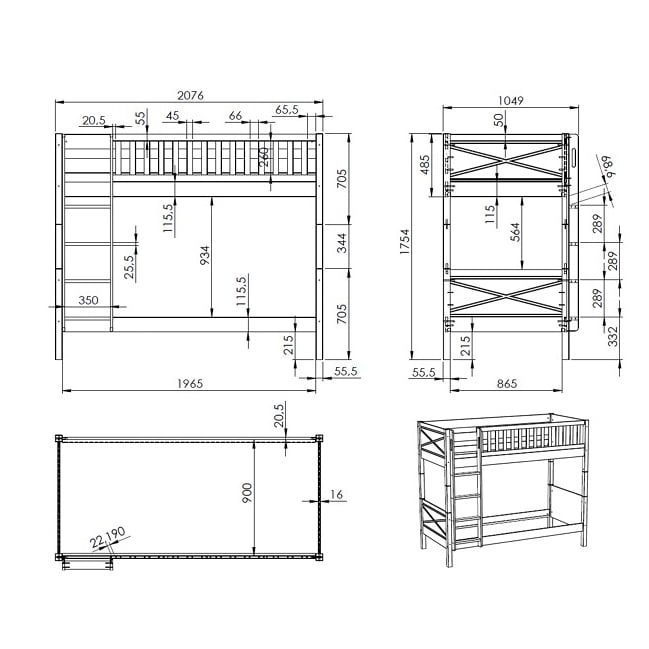 Dit zeer stabiele stapelbed is gemaakt van Scandinavisch grenen gecombineerd met MDF en is afgewerkt met een sterke lak. De ladder kan zowel links als rechts gemonteerd worden. De lattenbodem wordt meegeleverd, in dit bed past een matras van 90×200 cm met een maximale hoogte van 20 centimeter. Maximaal toelaatbare gewicht per slaapplaats is 75KG. Gemakkelijk te monteren door middel van bijgeleverde montagehandleiding. Bekijk ook de rest van deze collectie voor bijpassende items!