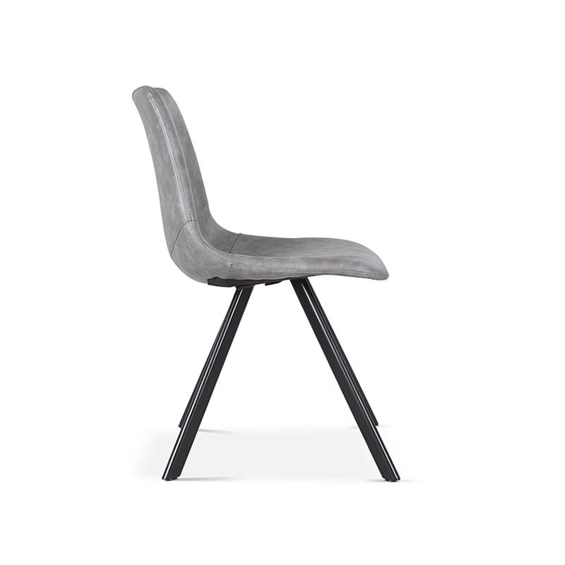 Deze stoere vintage stoel heeft strakke metalen poten en is door zijn eenvoud toepasbaar in vele interieurs. Het stikpatroon onderin de rug maakt de stoel af. Deze stoel heeft een zithoogte van 50 cm en een zitdiepte van 43 cm. Hij is verkrijgbaar in de kleuren bruin, zwart, grijs en cognac.