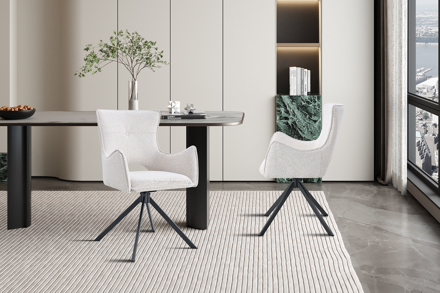 Stoel Darvo – Draaibaar – Stof Ecru – Set van 2