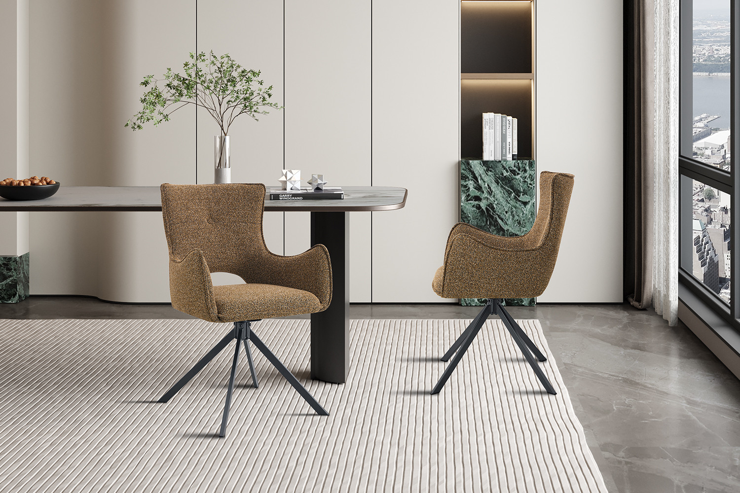 Stoel Darvo – Draaibaar – Stof Roest – Set van 2
