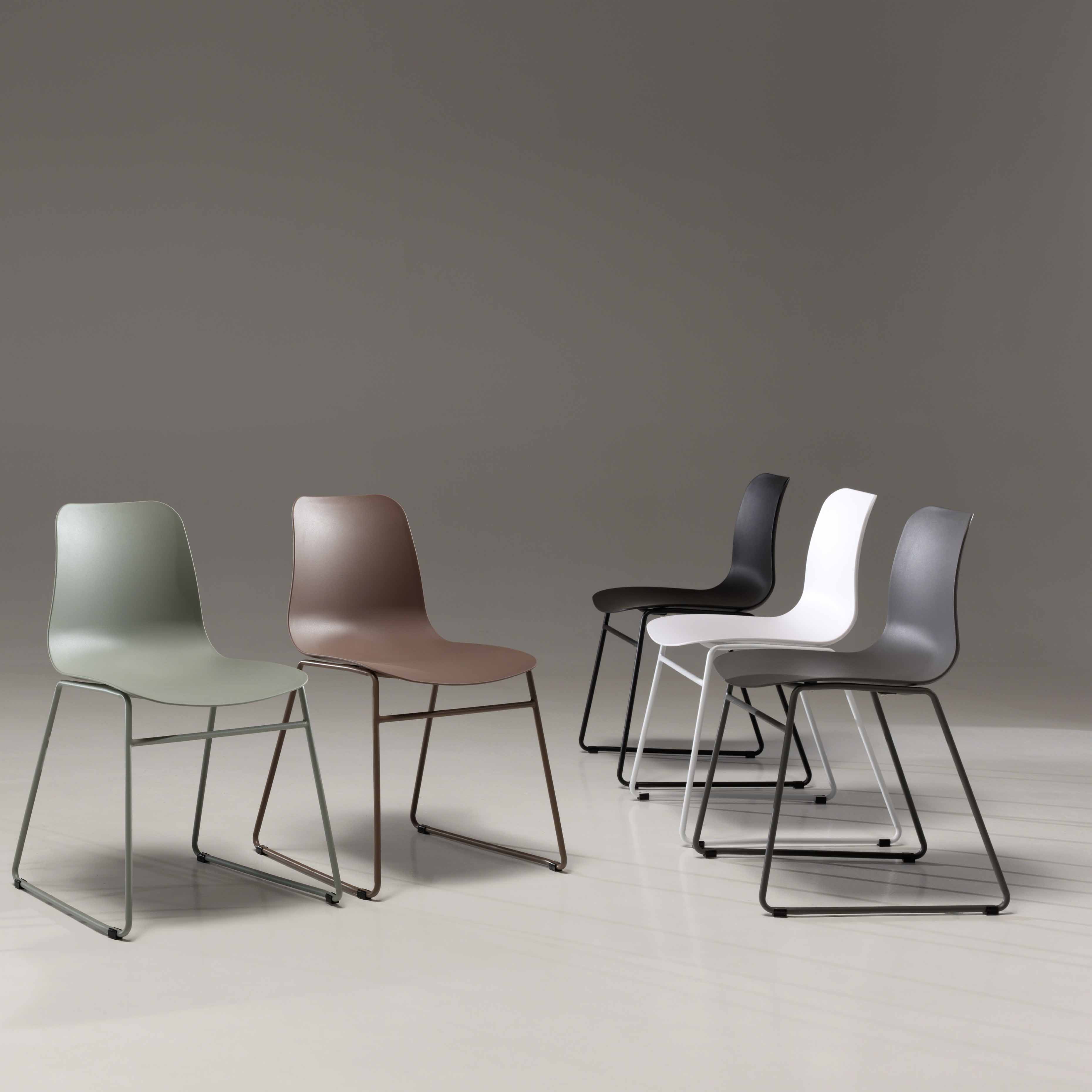 Deze strakke stoel heeft een metalen frame en een kunststof zitting en is hierdoor toepasbaar in vrijwel elke situatie. De stoel biedt goede ondersteuning en is verzekerd van een lange levensduur. Hij heeft een zithoogte van 49 cm, een zitdiepte van 42 cm en is verkrijgbaar in de kleuren terracotta, zwart, grijs, wit, groen en bruin.