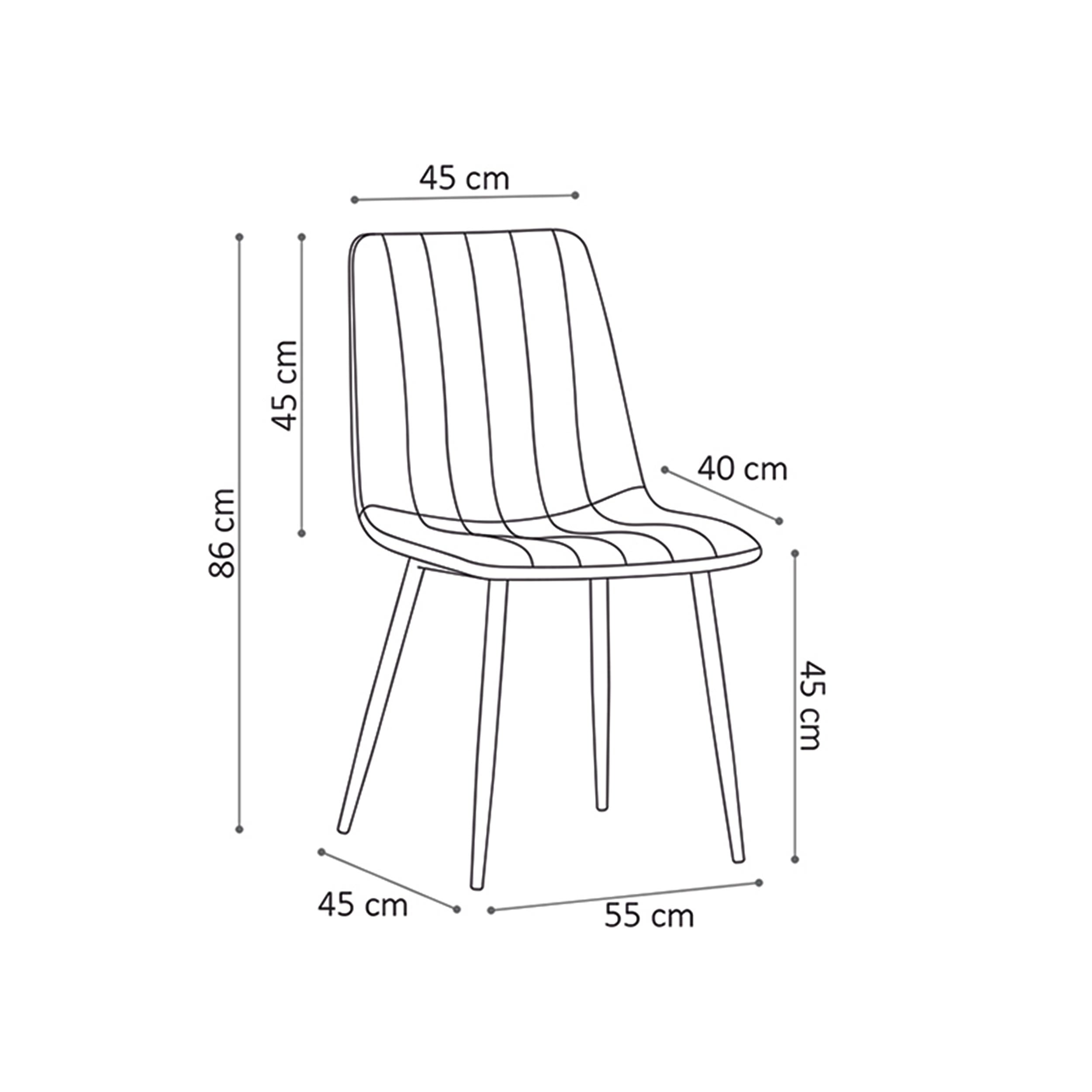 Door zijn rechtstandige stiksels in de rug krijgt deze stoel een elegante uitstraling. Dit in combinatie met de ronde metalen poten zorgt voor een degelijke eetkamerstoel. Deze heeft een zithoogte 45 cm en een zitdiepte van 40 cm. Leverbaar in 4 vrolijke kleuren.