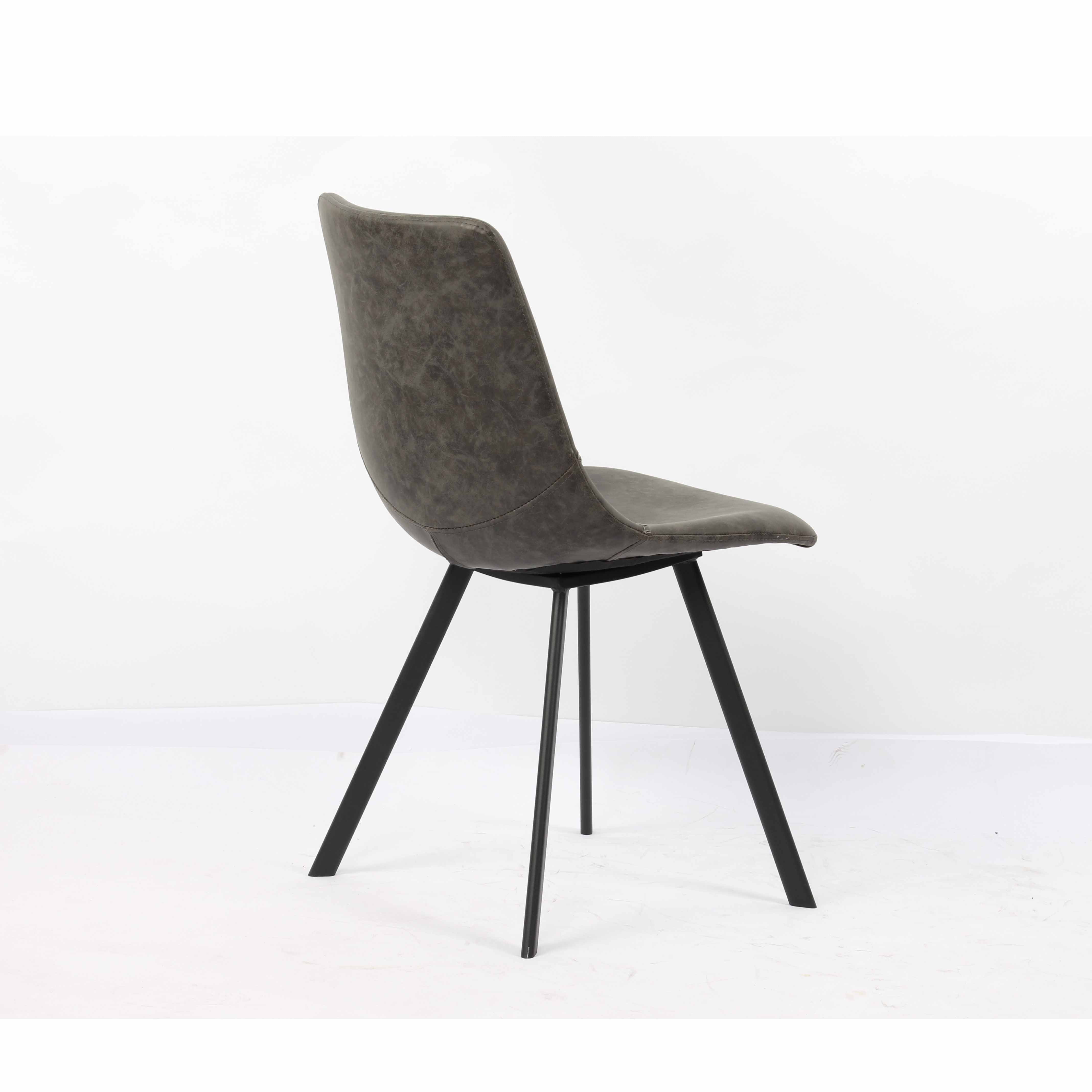 Door zijn voorgevormde kuip biedt deze stoel een goed zitcomfort, in combinatie met zijn strakke metalen poten en kunstleren bekleding geeft deze stoel een robuuste uitstraling. Hij heeft een zithoogte van 44 cm, een zitdiepte van 42 cm en is verkrijgbaar in het bruin, zwart, grijs en cognac. Deze stoel is door zijn rustige kleuren ook goed te combineren.