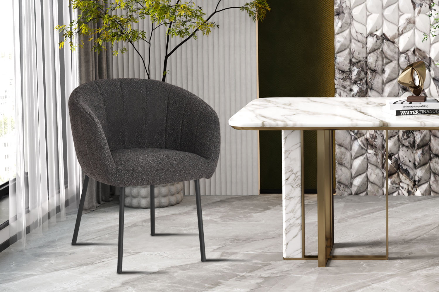 Stoel Pia Grijs Bouclé – Set van 2