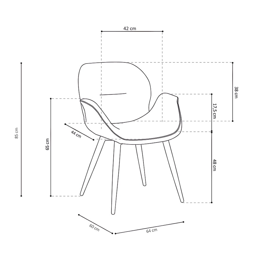 Deze moderne armstoel is door zijn nieuwe design een leuke toevoeging aan je interieur. Door zijn design heeft deze stoel een goed zitcomfort. Deze stoel heeft een zithoogte van 48 cm en een zitdiepte van 44 cm, de armleuningen zijn 17,5 cm. Verkrijgbaar in meerdere kleuren.